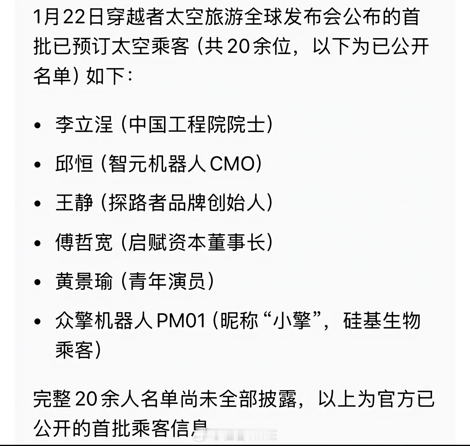 中国飞船预售票一张300万黄景瑜卷到太空圈了,穿越者首位明星太空游客黄景瑜黄景瑜,现已公开5人,包括演员黄景瑜、探路者王静等。