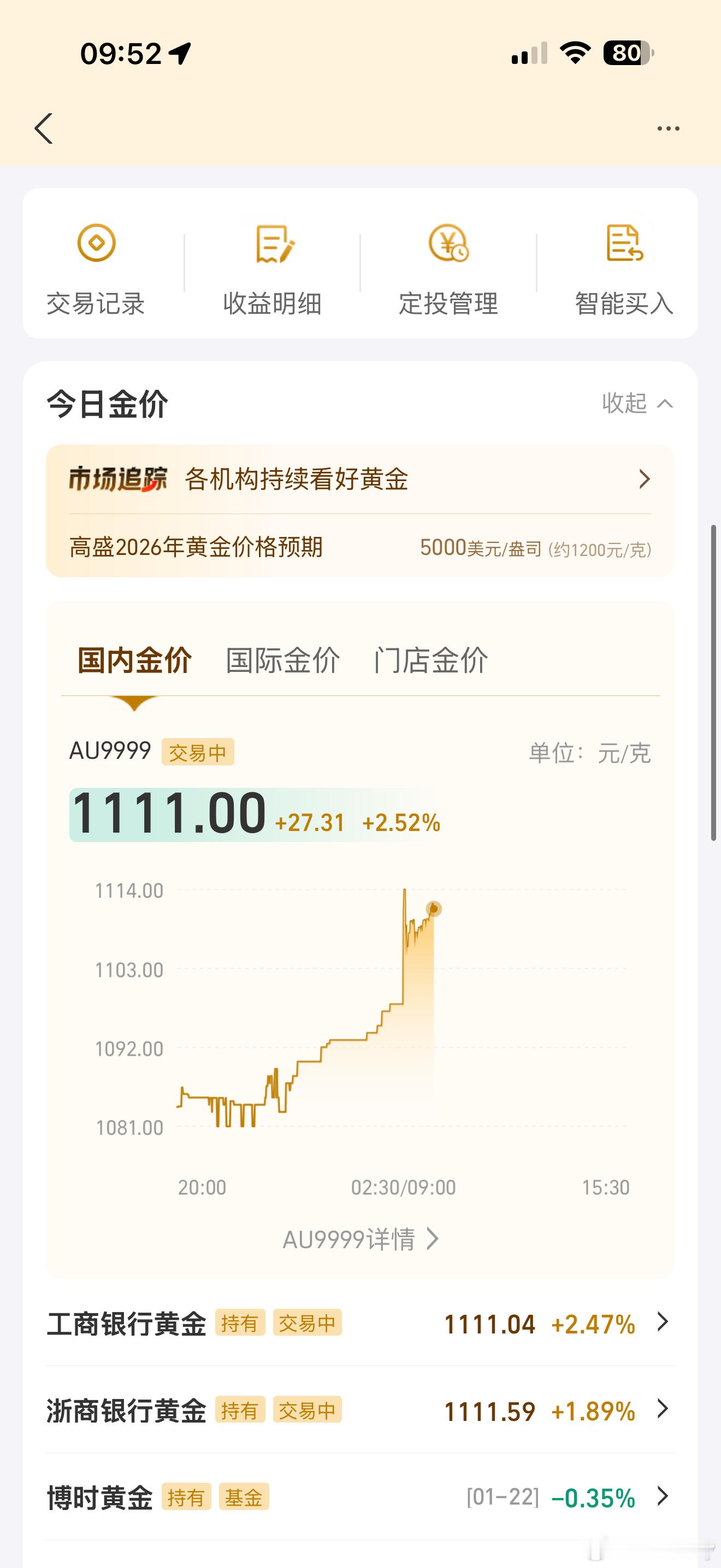 黄金破1100了太疯狂了真的太后悔998卖了黄金黄金