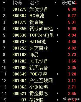 A股 目前光伏设备、商业航天、黄金等板块领涨