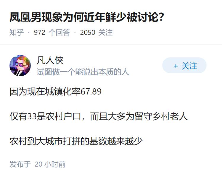 凤凰男现象为何近年鲜少被讨论? 早些年很多人都在讨论嫁人是否嫁凤凰男,跟城市的男