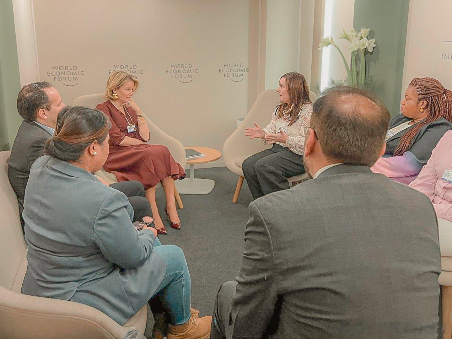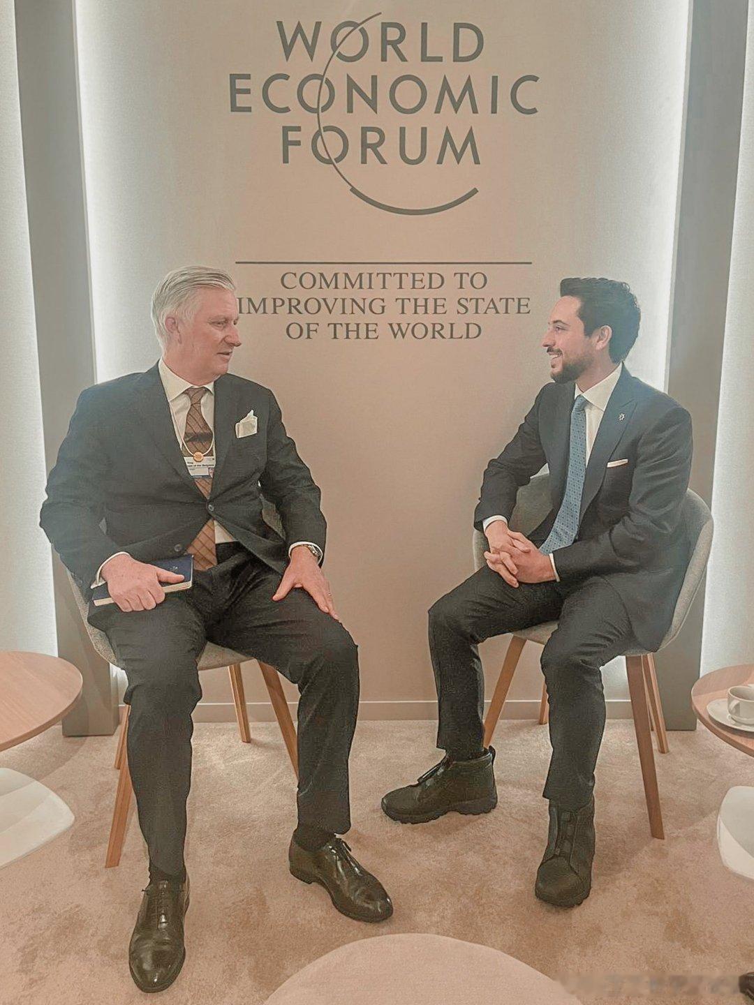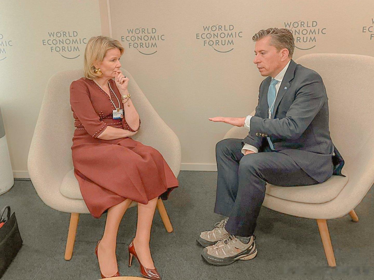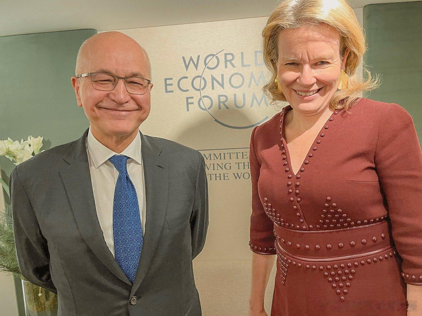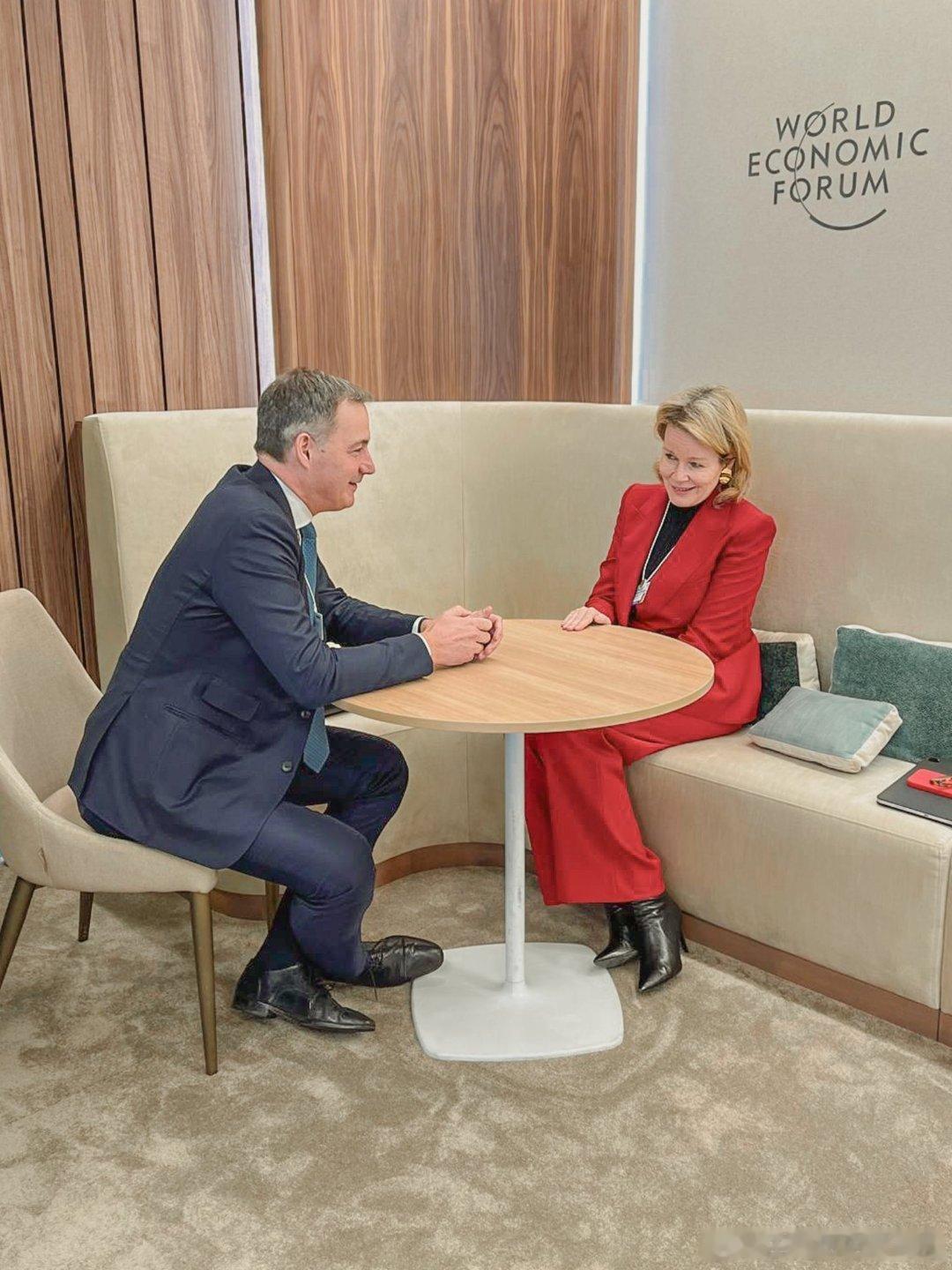 新闻 2026.1.23 比利时国王夫妇出席一年一度的达沃斯世界经济论坛Day 3,分别会晤各国领导人以及国际组织领导人,菲利普还和美国总统特朗普、约旦王储侯赛因碰了个面,玛蒂尔德的酒红色连衣裙来自Elie Saab,官图的小清新滤镜真是够够的。