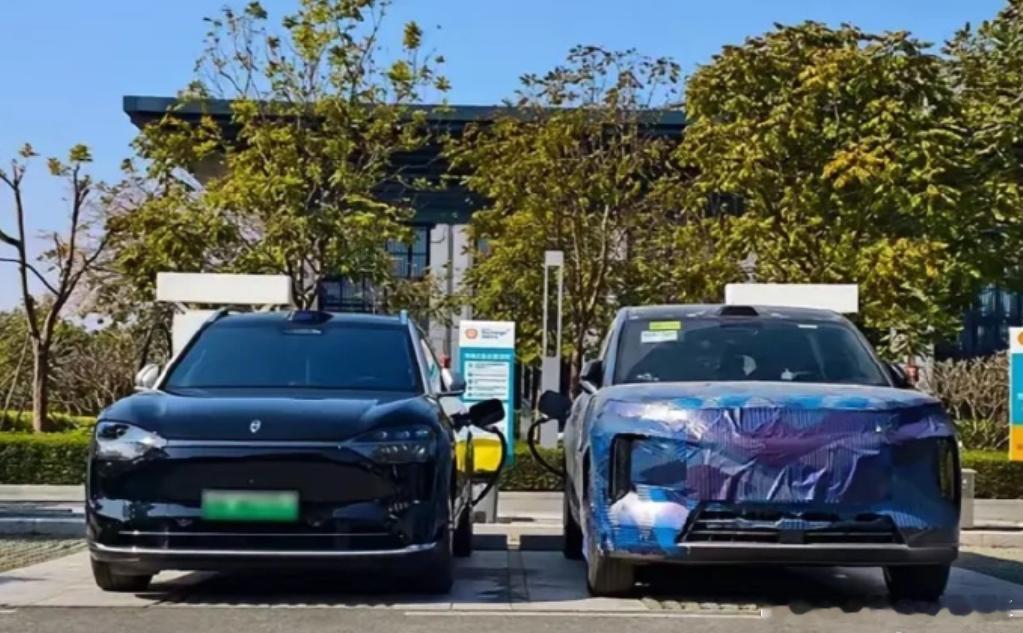 比亚迪唐9系测试车和问界M9同框,这么对比,明显比问界m9大了一圈。比亚迪问界m9