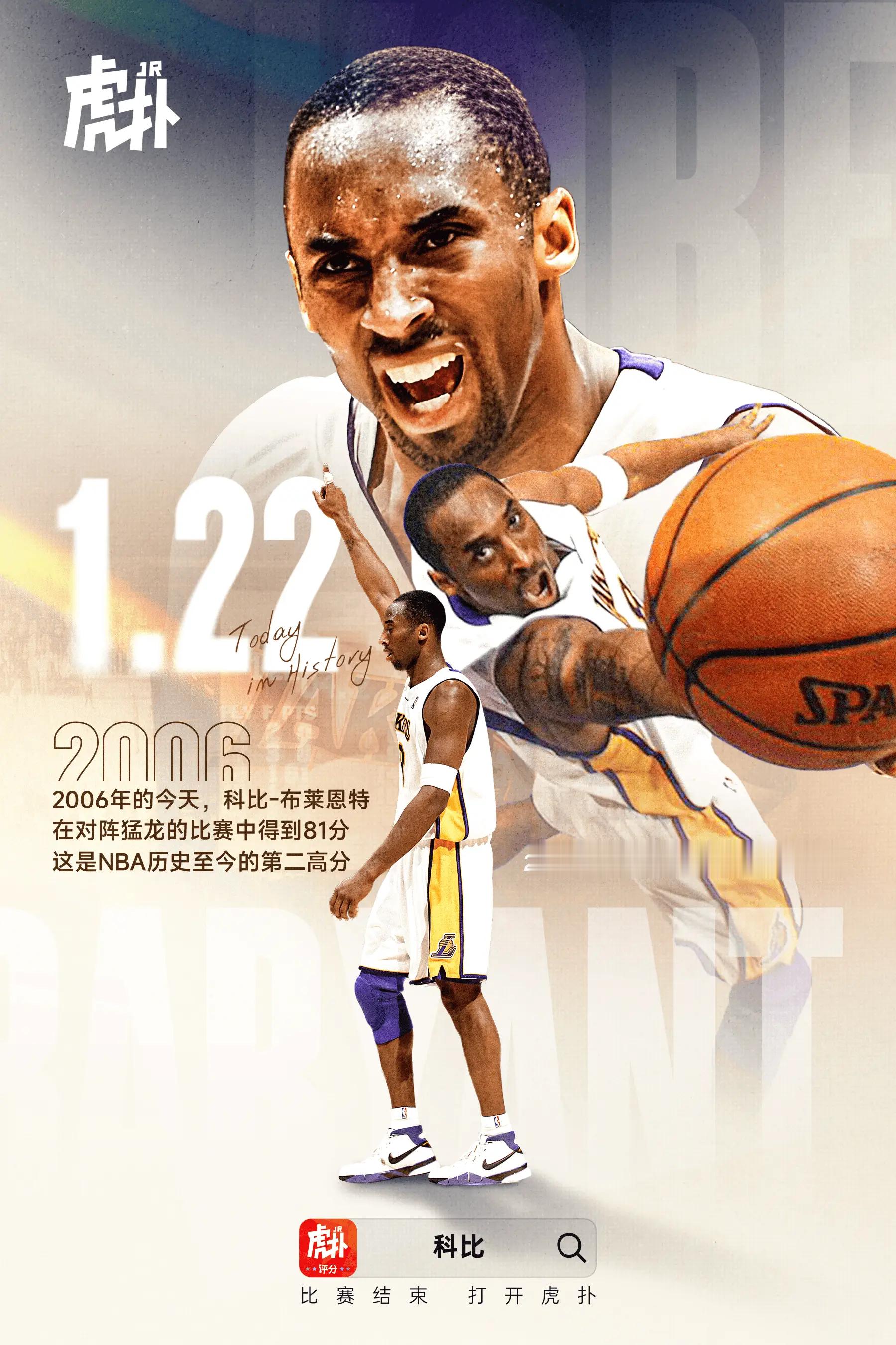 时光列车已驶过二十载——2006年的今天,科比创下单场81分神迹时间真的会在不经意间加速向前。回头再看才发现,那个属于篮球的夜晚,已经悄然走过了整整二十年。2006年的今天,科比狂砍81分的画面仿佛仍停留在记忆深处,但却早已成为一代球迷共同的时代印记。那不是一场普通的比赛,而是一次意志、技术与孤独英雄气质的极致绽放。本文将带你重新回到那个夜晚,走进81分背后的细节与故事,重温篮球历史上最令人心潮澎湃的瞬间之一。2005-2006赛季,正值奥尼尔离队的第二年,在经历了前一年未进季后赛的失败后,科比绝对不允许自己的球队重蹈覆辙。但受限于阵容缺陷,球队缺乏一个稳定的第二得分点,科比不得不将全部的得分压力扛在肩上。那一年,科比为球迷呈现了NBA历史上最精彩的个人表演之一。整个赛季,科比拿下27次40+和6次50+,赛季结束后场均35.4分。在06年1月时,科比曾连续5场砍下40+(包括1次50+),赛季末科比又有一次连续4场40+(包括一次50+),而这一整个赛季的得分表演终于在2006年1月22日这天来到高潮。在05年12月20日湖人主场击败独行侠的赛后,就有不少球迷预测科比本赛季会有一次载入史册的得分表现。那场比赛,科比三节打卡砍下62分,而此时独行侠全队甚至只有61分。赛后美媒发布报道,教练组曾询问科比在第四节是否想要继续上场冲击更高分数,科比拒绝了:他表示只在乎胜利。但该来的终究会来。2006年1月22日,湖人坐镇主场迎战猛龙,此时湖人战绩22胜19负,猛龙战绩仅14胜27负,整体实力湖人占优,而他们也确实需要这场胜利来稳固自己的排名。比赛开始后,猛龙并没有轻易放弃,最多时领先湖人14分。科比在上半场得到26分,勉强帮助球队咬住了比分。但比赛下半场,科比迎来了爆发。整个下半场,科比砍下55分带队完成逆转。最终,科比全场46投28中,三分13投7中,罚球20罚18中,得到81分6篮板2助攻。本场比赛也创造了两个纪录:单场81分历史第二仅次于张伯伦;半场55分历史第一。文字并不能展示出科比的表现有多震撼,而其他NBA球员的采访或许能带你了解。当时主防科比的杰伦-罗斯在多年后的一档节目中说:“我没让那混蛋拿100分就不错了。”科比多年的老对手邓肯在采访时表示:“要拿下40分已经不容易了,更何况81分,而且他还是队内最好的防守球员。”卡特、詹姆斯、韦德、诺维茨基等球星听到这个消息后,脱口而出的都是:“这简直难以置信(unbelievable)。”二十年过去了,记分牌上的“81”早已被无数次提起、反复书写,但它真正留下的,从来不只是一个数字。那是一个关于执念、关于孤独、也关于极限的夜晚:一个球员把全部意志倾注进比赛,用一次又一次出手,把“不可能”一点点变成现实。时代在向前,比赛的节奏越来越快,这个记录或许终将被未来的年轻球员超越,但那一晚的震撼却始终无法被复制。因为它不仅属于篮球历史,更属于那些曾在屏幕前屏住呼吸的人。二十年后再回望,我们怀念的不只是81分本身,而是那个敢于把比赛背在身上的科比-布莱恩特,以及一个永远不会重来的篮球时代。NBA单场81分有多难科比81分20周年