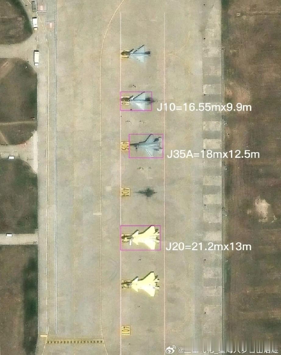 低清图两张,时间地点皆不详,来源见水印... 402那个机子应该是歼20A了,有拱背的阴影,404 Not Found,无法发现,只有影子.. 不要以为这些尺寸只是数据,我们可以自己查查一个标准篮球场尺寸是多少,你就知道这些飞机的尺寸有多大了.. 看地表植被感觉像是黄田坝,但骨头鹰在场就有点懵了...