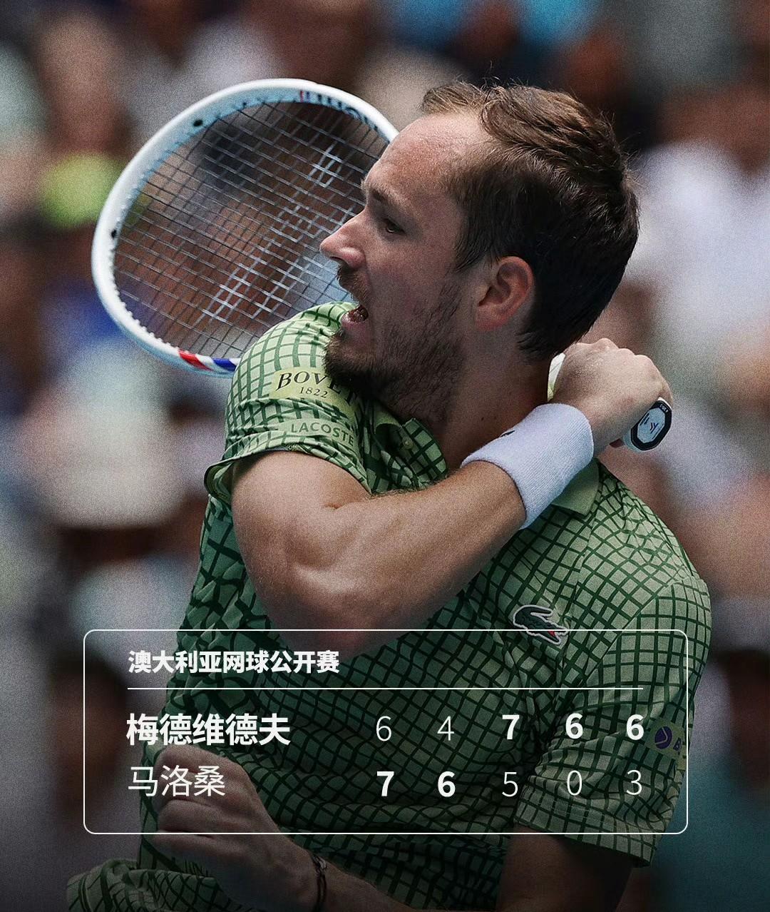 辛卡决可以不看,梅钱决是一定要看的!两人连续两年在澳网交手,一年之内第四次交手,五小时警告。 澳网男单第三轮赛果: 1、梅德韦杰夫6-7(5)/4-6/7-5/6-0/6-3大逆转马洛桑,有惊有险晋级16强。 2、勒纳钱7-6/6-4/6-2博尔热斯