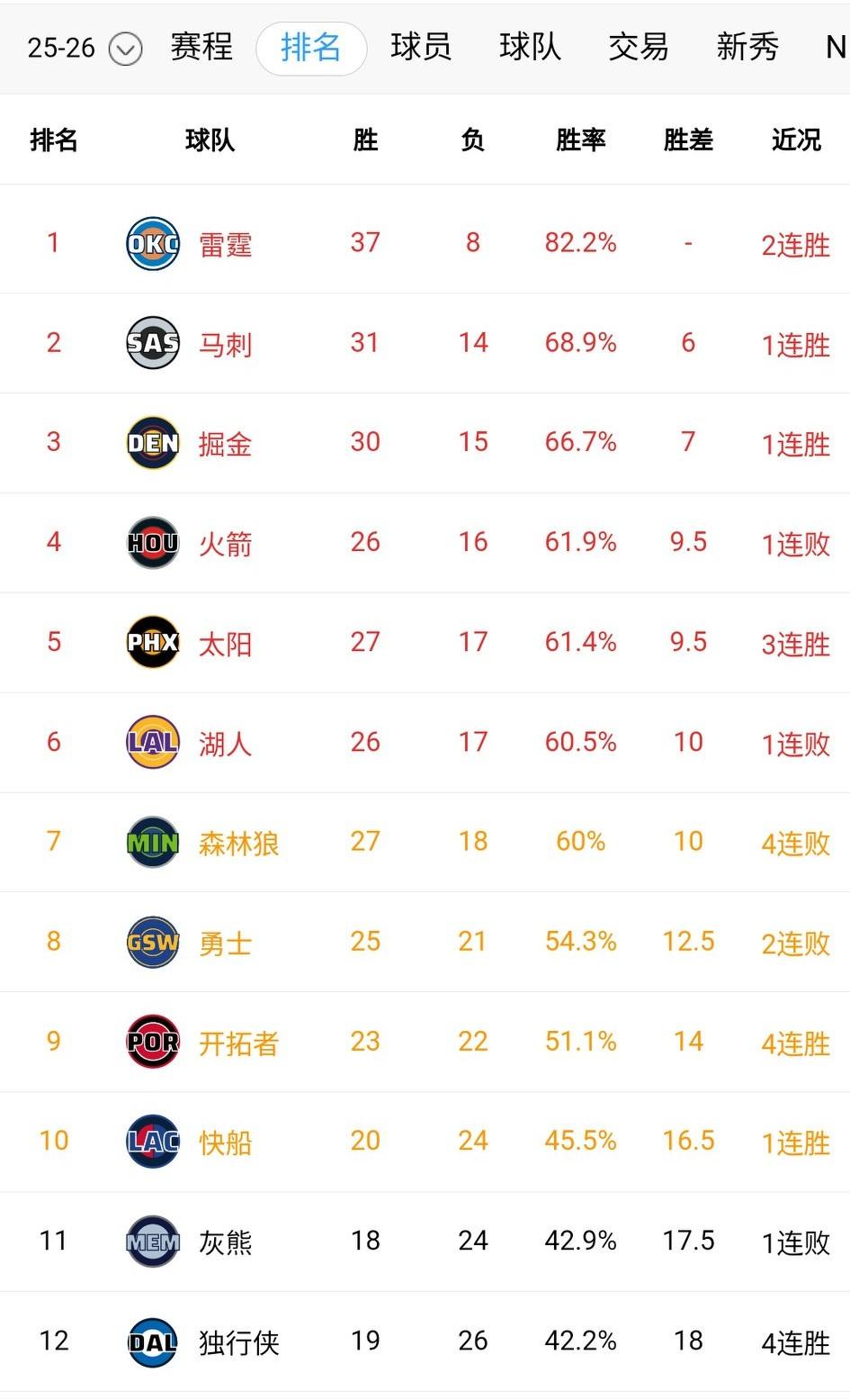 西部排名大变化!快船继续北伐,湖人继续下滑!森林狼才是湖人侠。 森林狼四连败拯救了湖人,火箭湖人相继输球,分列西部第4、第6。太阳依然第5。 湖人马上要开启六连客,掉入附加赛指日可待。湖人正处内部动荡,球队战绩起伏很大,雷迪克已经带不动了。 勇士无奈摆烂,今日又输了但稳居第8,开拓者击败热火,跟勇士只有1.5个胜场差。