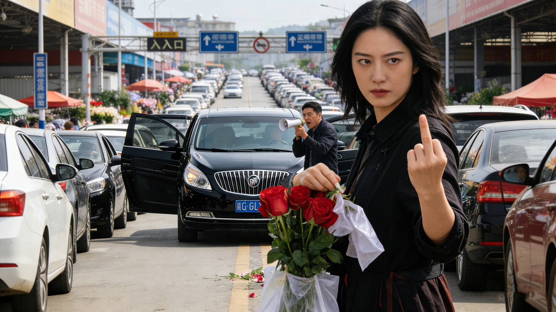 真把马路当自己家了!云南斗南花市车流高峰期,一女司机开黑色别克GL8,横堵停车场入口大敞车门,慢悠悠整理玫瑰,致后方车辆拥堵。后车男司机按喇叭提醒,竟遭她竖中指挑衅,男司机怒而追尾,GL8受损,女子被撞倒,场面失控,这事,你怎么看?云南女司机堵路挑衅反被撞#云南斗南花市#女司机堵路#竖中指挑衅#后车怒撞