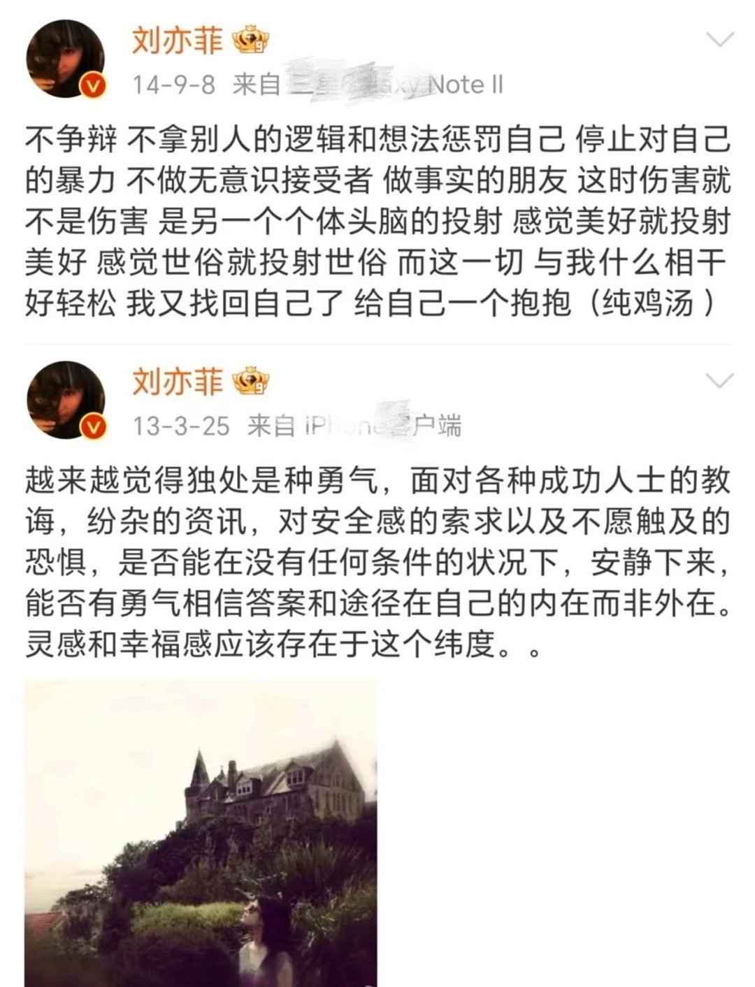 刘亦菲的松弛感绝了 考古刘亦菲早期微博,20多岁就活得清醒通透。向内求而非向外求,关注觉察自己的内心,这种松弛感真的绝了✨