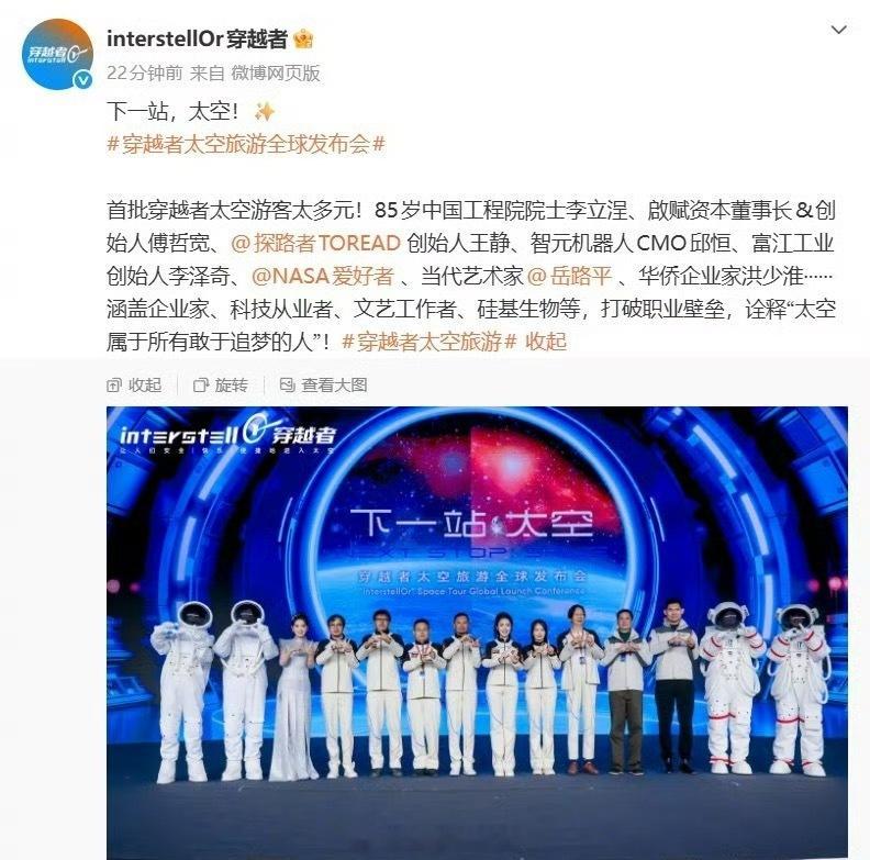 中国飞船首批20余位游客已预订穿越者太空旅游全球发布会”,公布了其商业载人航天产