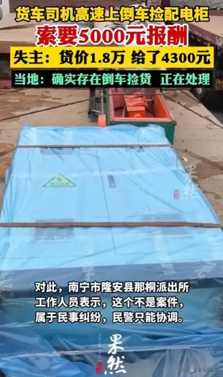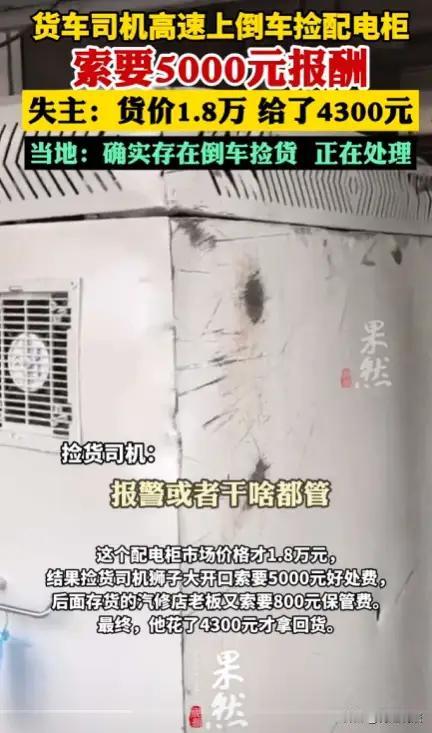 **他不是丢货,是丢了尊严。 那120公斤的配电柜没压垮他的腰,可一句“不给钱就不还”,差点压断他十年跑车的脊梁。** 河北邢台,43岁的贾师傅,开货车12年,从不超载、不抢道、不接黑单。 这次拉的是南宁某工地急需的配电设备,合同写明:**货到即付尾款8.6万元**。 高速上突遇横风,绑绳崩断——120公斤的铁柜轰然坠地,卡在匝道应急车道边缘。 他不敢停:后方大车呼啸,硬停可能引发连环追尾; 他搬不动:单手拎不起50斤,更别说百公斤铁疙瘩; 他选择最稳妥的路:开到下一个收费站,报警、报保险、等救援。 可监控拍下最刺眼的一幕: ▶️ 一辆蓝牌货车驶过,司机瞥见铁柜,一脚刹车; ▶️ 倒车、下车、拍照、打电话; ▶️ 半小时后,叉车进场,把配电柜抬上车扬长而去。 当晚,对方来电:“货在我手上,5000块,微信转账,立马给你送回工地。” 贾师傅咬牙答应4000元——那是他半个月运费。 对方却说:“货在XX汽修店,你来取。” 贾师傅赶到,汽修老板递来一张手写收据:“保管费800元,现金。” 他翻遍钱包,掏出皱巴巴的790元,老板摇头:“少一分,货不放。” 他蹲在店门口抽了三根烟。 不是心疼钱——是第一次觉得,自己这张脸,在别人眼里,只值4000块加800块。 更讽刺的是: ✅ 配电柜市场价:1.2万元 ✅ 保险理赔上限:货损按实际价值赔,但需3日定损流程 ✅ 而对方索要的4800元,几乎等于他此趟毛利的90% 警方介入后,对方辩称:“我捡的,算无主物!” 法院判决一锤定音: ❌ 不构成盗窃(因未秘密窃取) ✅ 但构成**不当得利+敲诈勒索未遂**: > “明知系他人运输中遗失货物,仍以拒不返还相要挟索取高额费用,违背公序良俗与诚实信用原则。” 最终:退还全部款项,赔偿贾师傅误工费2200元,并公开道歉。 而真正让人破防的,是贾师傅结案后发的朋友圈: > “我不怕拉夜车,不怕过隧道,不怕修车到天亮。 > 我怕的是—— > 下次再有东西掉在路上, > 是该先报警,还是先给‘好心人’发个红包?” 这不是个案,是千万物流人的日常暗礁: 当“拾金不昧”变成“拾货要价”, 当“伸手帮忙”异化为“趁火打劫”, 我们失去的,从来不只是一个配电柜。 真正的善意,从不要价 请给守规矩的人,留一条不弯腰的路 引起关注的文案 高点击率文案