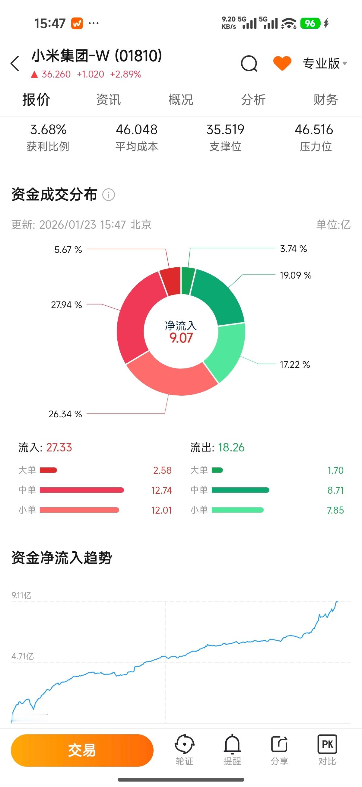 小米今天的交易额算是比较低的,开盘五分钟交易10个亿我还以为今天能破100亿,但净流入居然有9亿。希望不是我的错觉,我觉得从小米宣布持续回购之后,大空头做空意愿可能变低了,接下来再观察几天看看