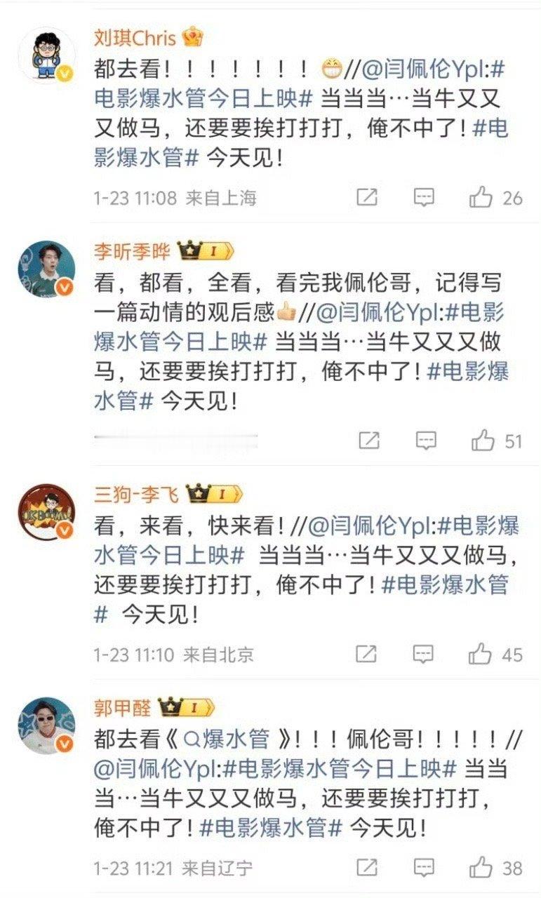 喜人打call也要演小品吗喜剧人连宣传新片都要演小品!刘旸教主这波神评论,把闫佩伦的评论区变成了即兴喜剧舞台——建议下次直接开直播打call,笑果更炸!