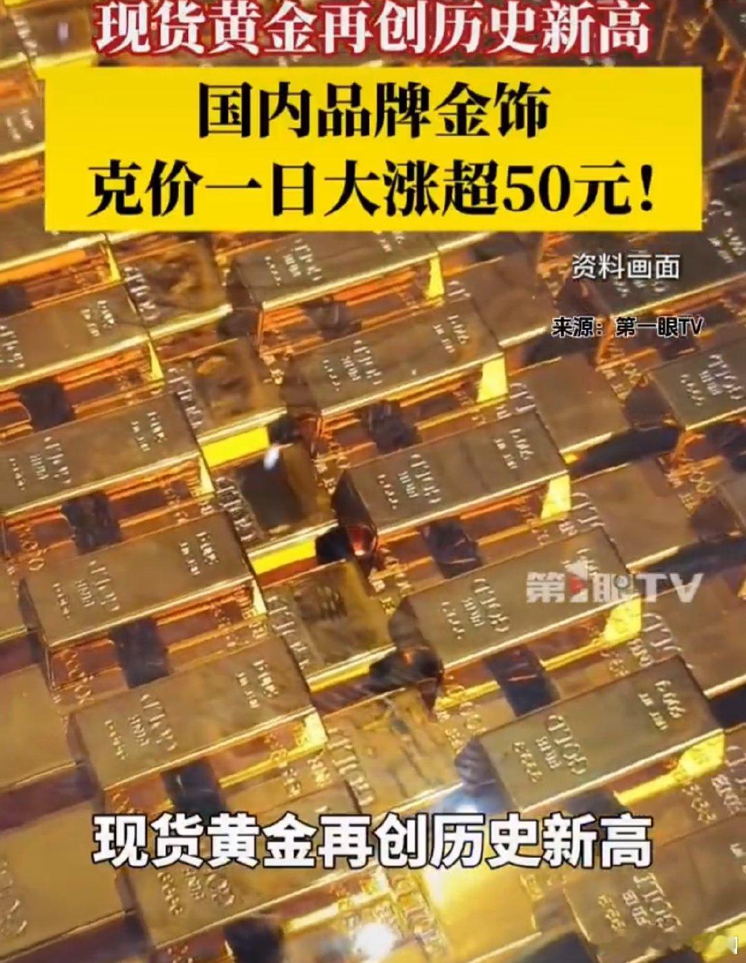 金价单日涨幅创历史纪录国内品牌金饰克价一日大涨超50元每克 黄金市场彻底沸腾!国际金价单日暴涨刷新历史纪录,涨势火速传导至国内,主流金饰品牌克价一日大涨超50元,黄金成了当下最炙手可热的硬通货,让无数人直呼“买金节奏赶不上金价涨速”!