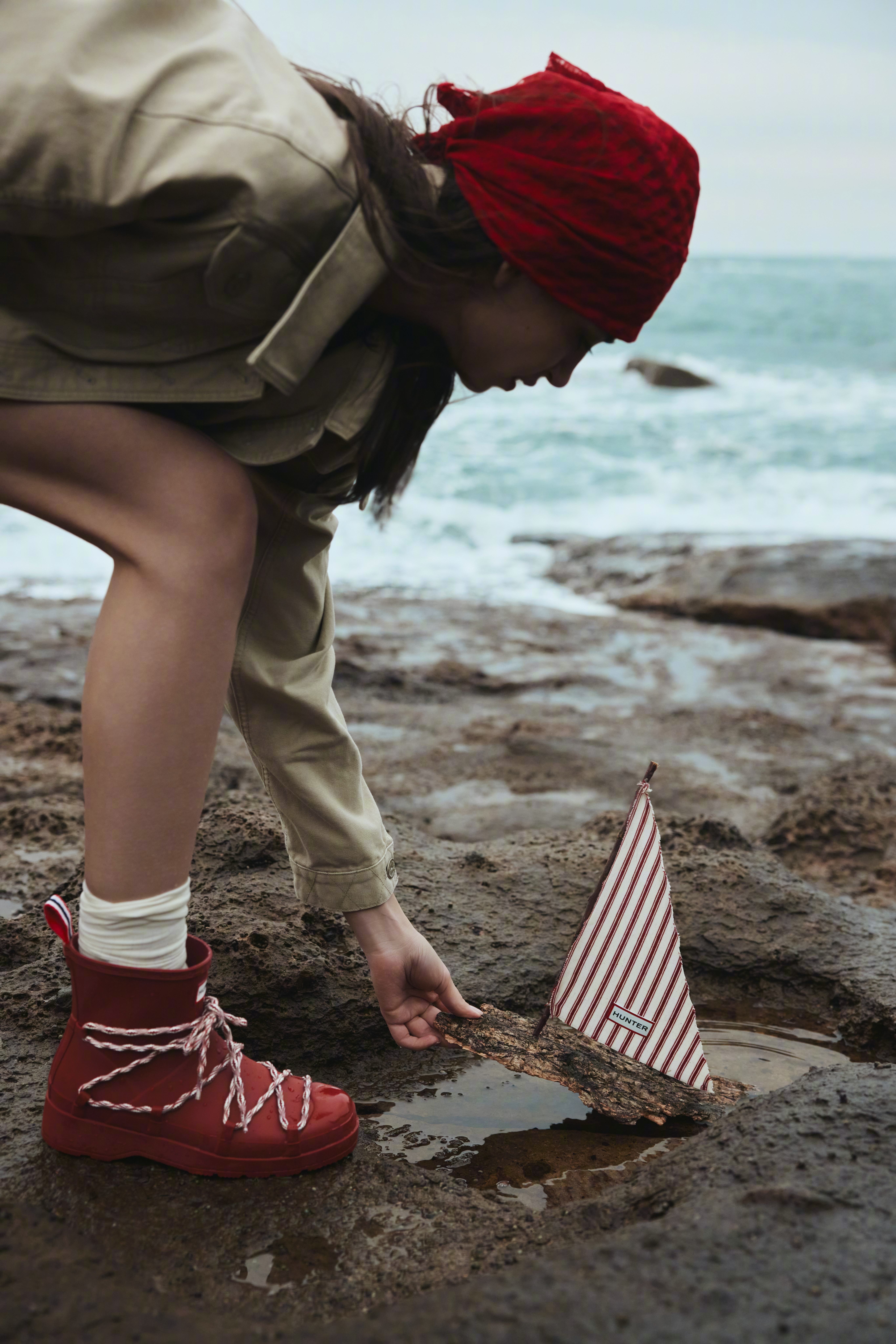 HUNTER正式发布2026年春夏完整服饰系列,开启名为「航海奇履」的深蓝远征。这是品牌首次从经典鞋履延伸至服装与配饰的全系列。系列延续英伦风格,以“碧海巡航”、“游船派对”、“深海秘藏”三个篇章展开。航海精神贯穿设计,蓝白条纹、绳索金扣与标志性红色等元素,化为当代衣着的诗意注脚。Fashion_FeedHUNTER