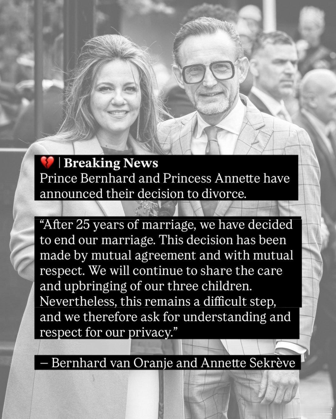 新闻 2026.1.23 荷兰奥兰治-拿骚王子伯恩哈德(荷兰玛格丽特公主夫妇的次子)宣布和妻子安妮特友好结束25年婚姻。2000年,伯恩哈德与在格罗宁根大学求学期间相恋的女友安妮特(荷兰本地人,拥有贵族血统)分别举行民事婚礼和宗教婚礼,婚后两人共同二子一女,夫妻俩以名下拥有数百处物业和荷兰F1大奖赛赛事老板而闻名。2013年,伯恩哈德被查出患有非霍奇金淋巴瘤,夫妻俩携手抗癌并最终成功,伯恩哈德后续恢复也不错,去年两夫妻还共同出席国王节活动(图9),但这么多坎坷都一起迈过了,最终还是难逃离婚的结局。