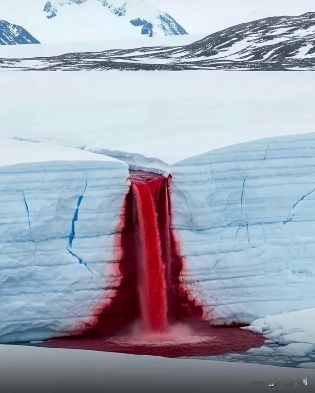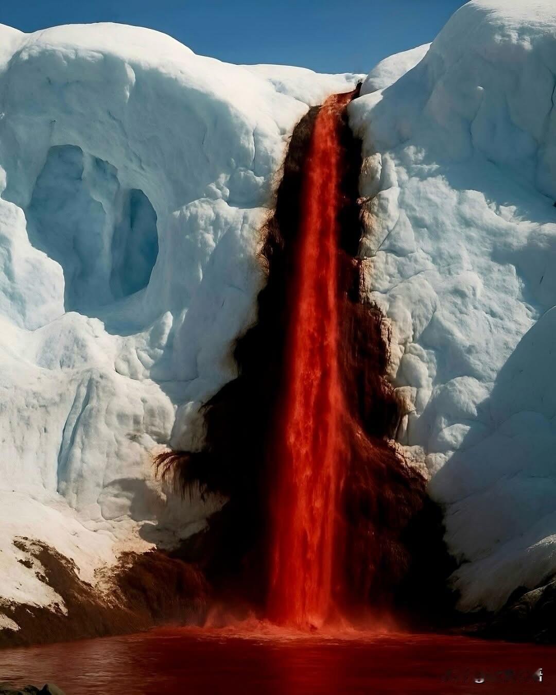 南极洲出现惊人的血瀑布! 南极血瀑布太绝了! 红色水流太震撼 诡异又震撼的自然奇观。 从泰勒冰川冲出来的水流,鲜红得像血一样,淌在白茫茫的冰面上,视觉冲击直接拉满!原来这颜色是因为水里富含铁元素,百万年被困在冰川下,一接触空气就氧化变红了~ 最牛的是,这么冷的环境,因为盐分极高,水居然不会冻住,还藏着不用晒太阳就能活的微生物!真的被大自然的神奇狠狠折服,地球的隐秘角落也太有料了,看完好想亲眼去看看这震撼的画面!