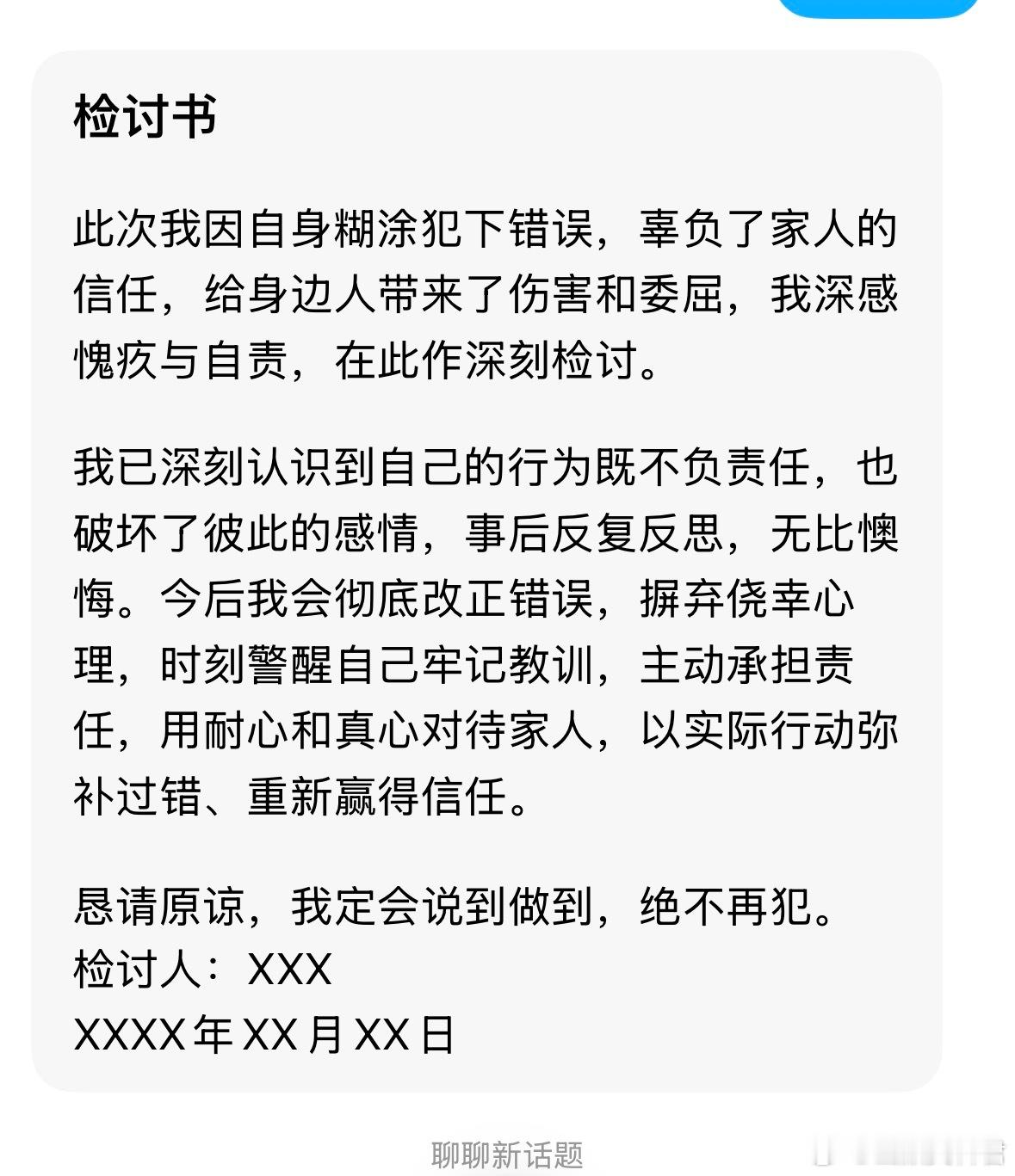 以后道歉请按照这个标准来如果再犯错以后就按照这个标准来写检讨书。