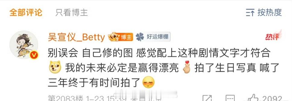 吴宣仪 有属于我的花路吗姐姐还是少发点咯噔文案吧,一次两次三次姐又一次凭借自己的咯噔发言把自己带上了rs 太多了…不完全统计……这次吴宣仪发文,问未来有没有属于她的花路看了下她的存货只有和翟潇闻的《有戏》,前一部还是在王权里演配角,上一次的水花是训粉说希望和妈粉保持一定的距离。。。更新:只是自己修了个图然后想配一个咯噔的文案。。。