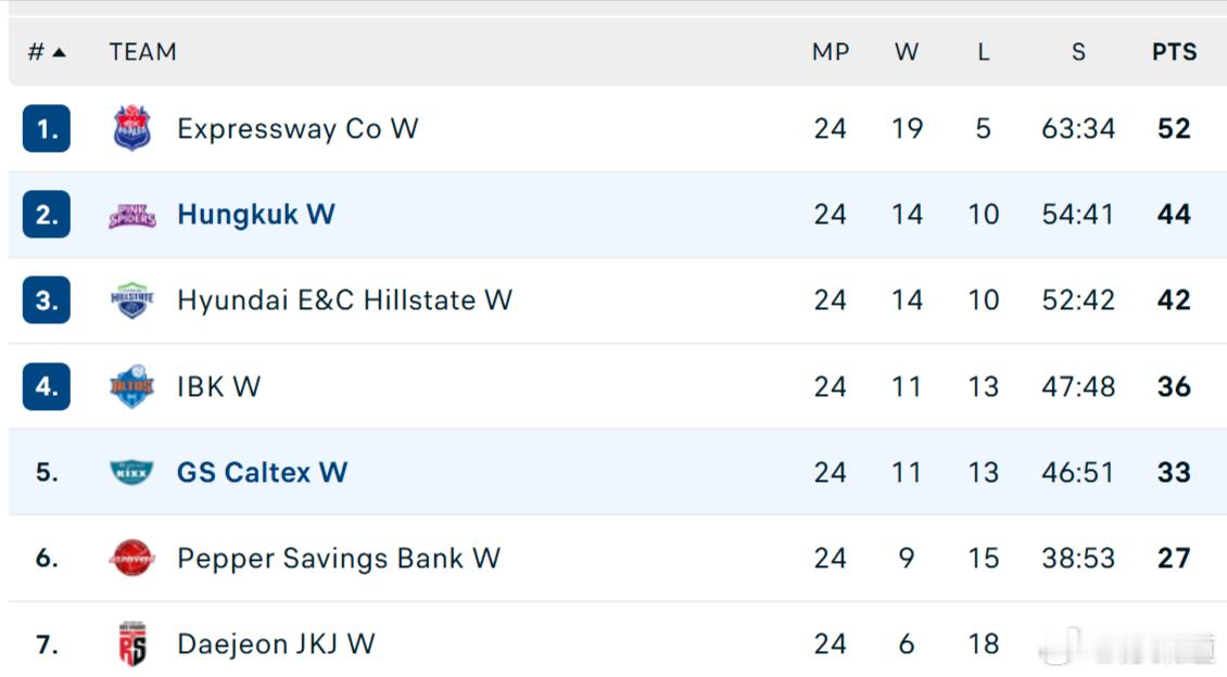 国际排坛动态韩国女排常规赛第四轮结束后,积分榜
