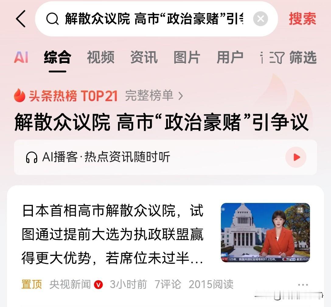 高市早苗这个女人的目的非常的明确,那就是趁着日本民众还不知道底细之前,先把事情办了。 现在日本民众对于这一次工业原材料的禁运,其实并不很清楚。 属于是知其然,不知其所以然。 知道有这么个事情,但是还不知道问题有多严重。 因为他们的媒体并没有深挖。 所以在一些民粹力量的鼓动下,高市早苗的支持率还是很高的。 趁着老百姓还没有醒悟过来,他赶紧进行重新选举。 这算是一种政治偷袭。 典型的日本人的小聪明啊,没什么大战略,都是一些小战术。