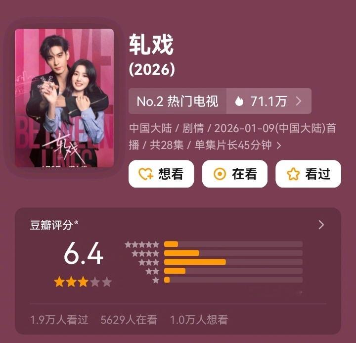 导演猫的树,从2020年自立门户以来,执导or监制的评分最低作品,目前是——《轧戏》。