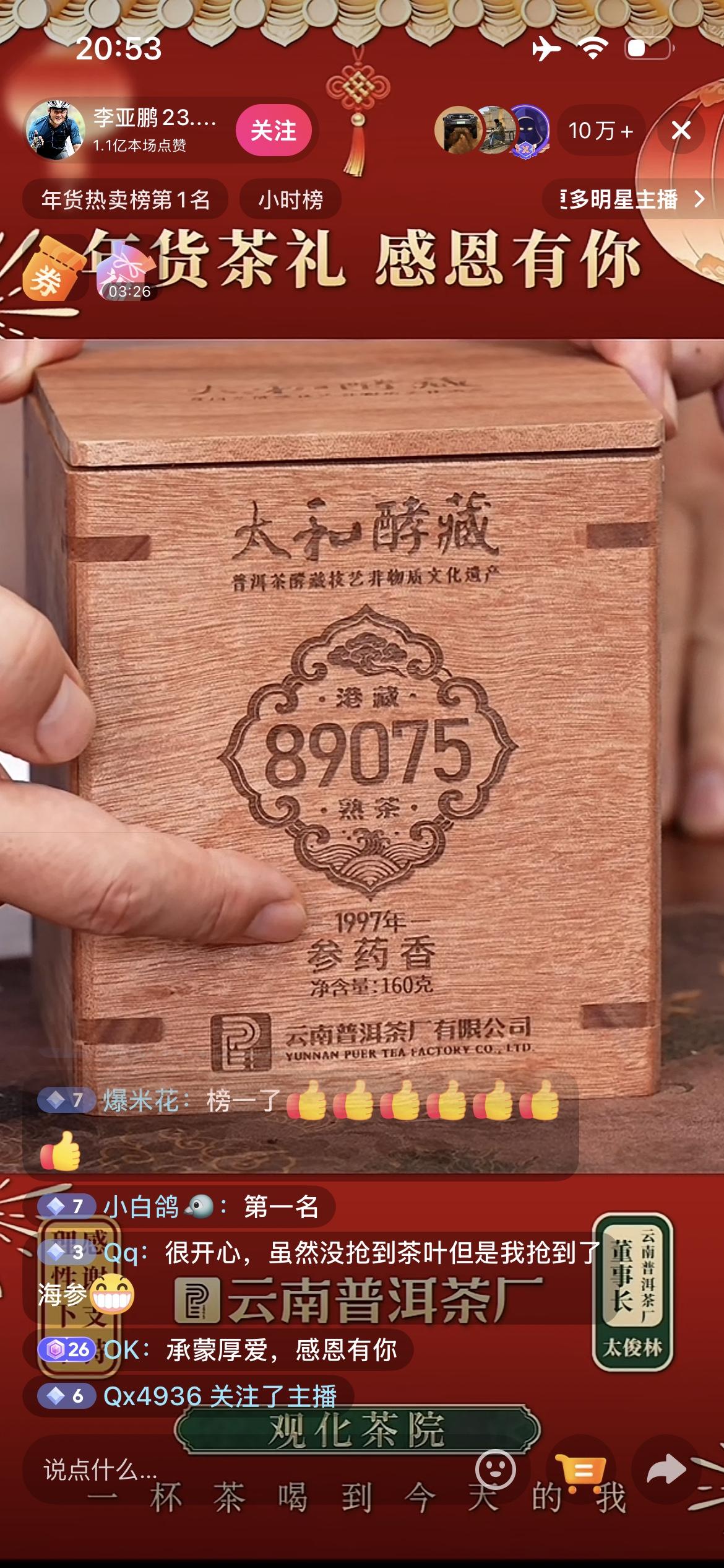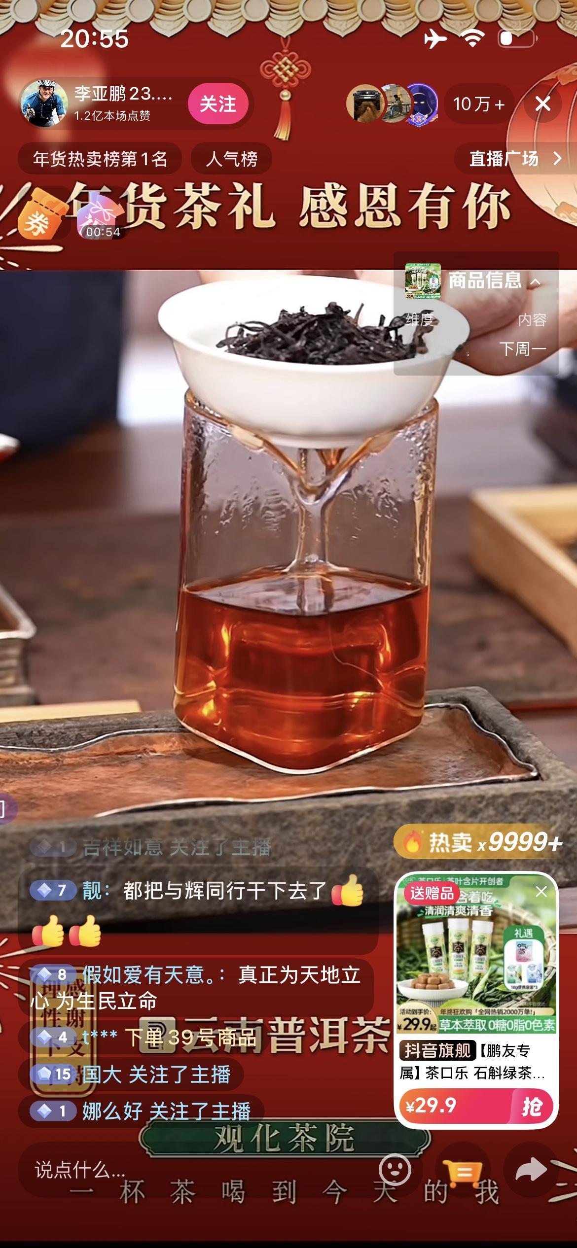 李亚鹏今晚开直播卖茶叶,直播间又是爆火,现场展示一款茶叶,说是97年的!咱也不懂,以前买茶叶是越新鲜越好,这种茶难道类似酒,放久了好喝!粉丝们急得抢不上,有新人不断关注,也有网友说,争取热度超过董宇辉!建议李总直播卖点吃的吧,家家需要那种,争取让更多的人参与进来!