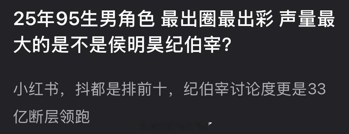 25年95生男角色最出圈最出彩声量最大的是不是侯明昊的纪伯宰?