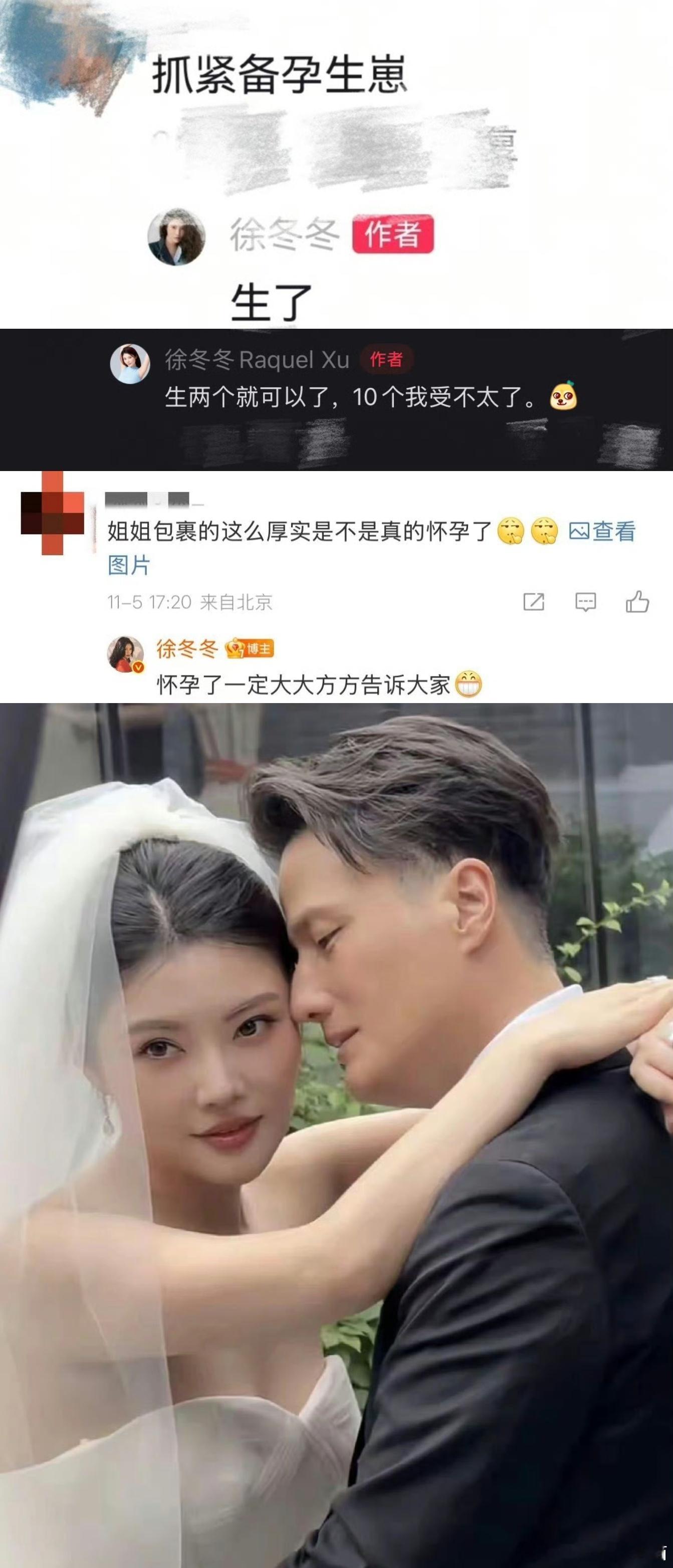 徐冬冬尹子维早生贵子具象化 徐冬冬发的配图真就是早生贵子具象化,两人脸上都看得出幸福感,儿女双全家庭美满!!