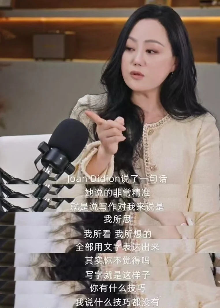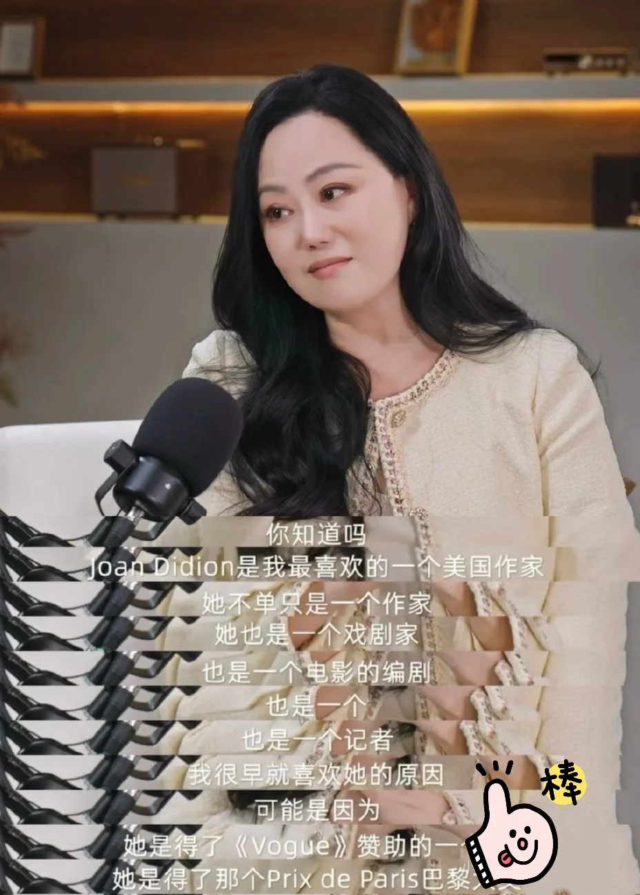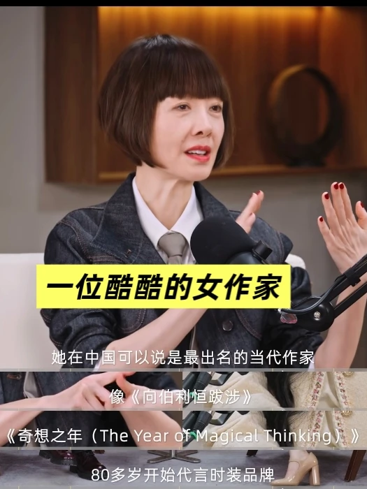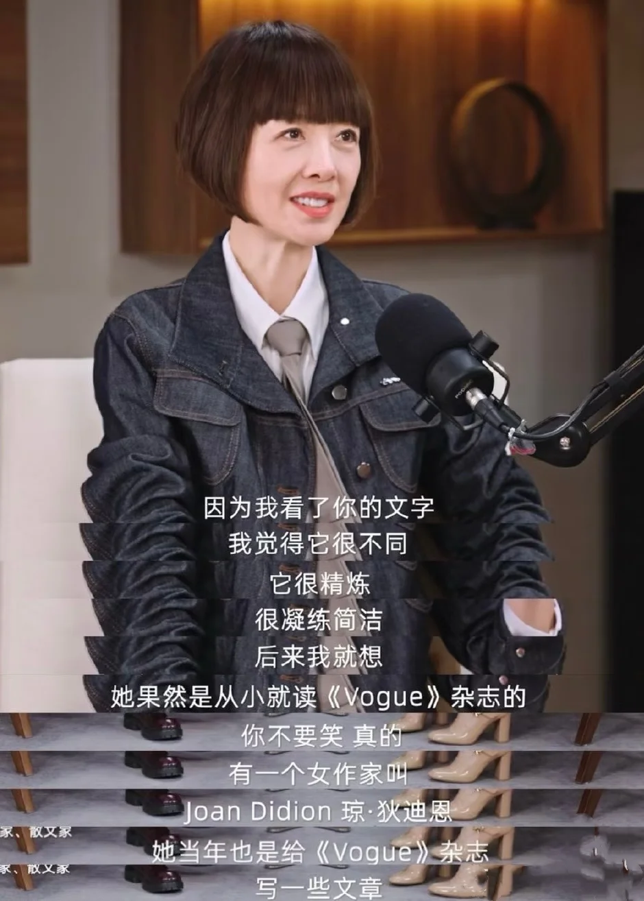 刚刷完《鲁豫·慢谈》,后劲太大了! 在这段长达4小时的对话,她们聊了很多。其中有一个人,被提起了好几次。这个人就是美国当代女作家,狄迪恩(Joan Didion)。 . 她晚年被Céline请去拍广告,一脸冷峻躲在黑色大墨镜后面,满脸皱纹却美得不可方物。 . 狄迪恩的人生,真的比电影还精彩。 从大二就在《Vogue》工作,到后来成为美国非虚构写作的教母。她这辈子好像只做了一件事:写。 无论发生什么,她都在写‼️ . 👉年轻时,她用《向伯利恒跋涉》记录那个混乱迷茫的60年代,不像别的记者那样冷冰冰,而是把自己的焦虑、迷茫都揉进文字里。 . 👉到了晚年,面对丈夫突然倒在餐桌旁离世、唯一的女儿紧接着病逝,这种天塌下来的剧痛,她依然选择坐回打字机前,把悲伤一字一句敲成了《奇想之年》和《蓝夜》。 . 狄迪恩说了一句足以支撑我们所有人的话:为了活下去,我们给自己讲故事。 . 她不是在卖惨,而是在用文字把破碎的自己拼凑起来。这种清醒的生命力,太震撼了。 . 访谈快结束时,鲁豫说:“等我80岁了也要像她一样接代言!”戴着她的大墨镜,太酷了! . Joan Didion说,写作,是我所思,我所看,我所想的,全部用文字表达出来。