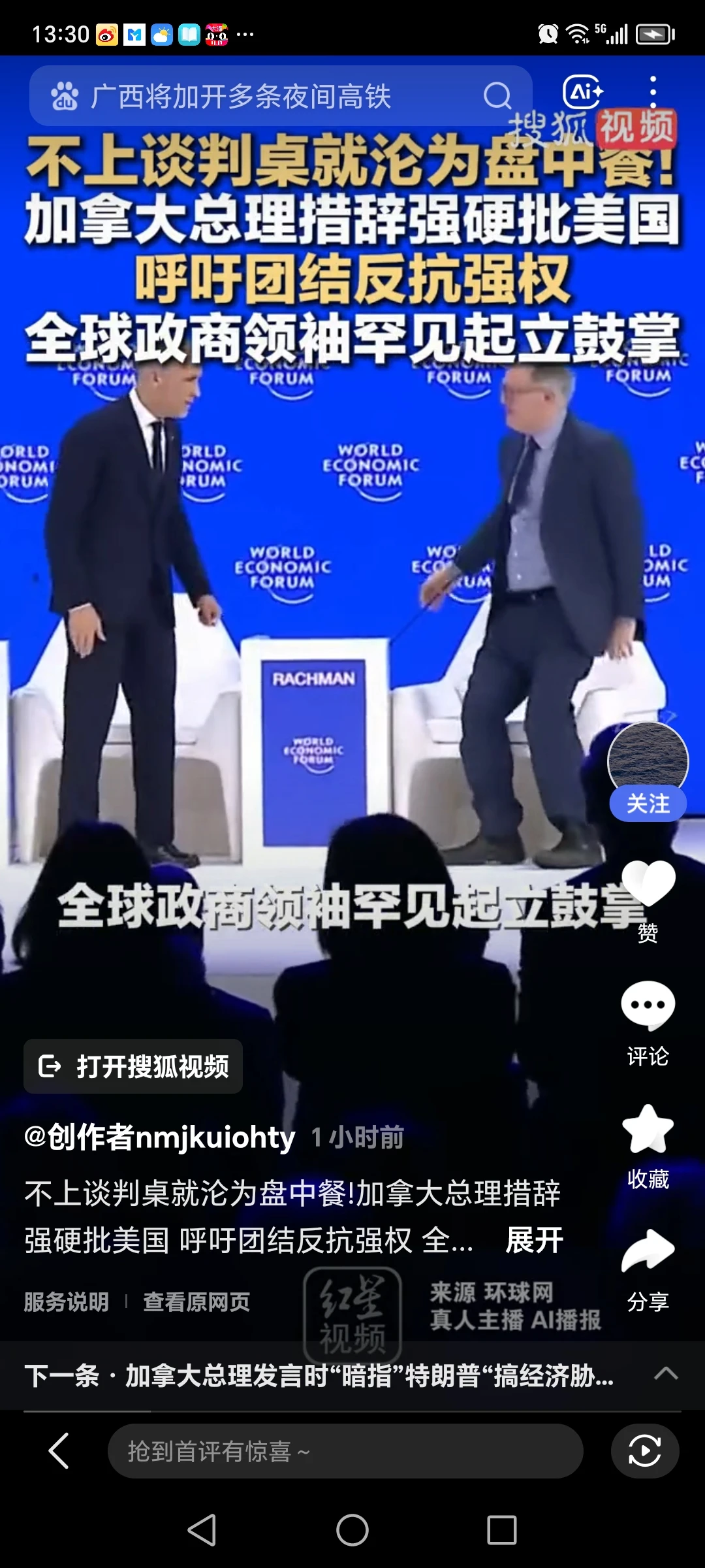 去年夏天,卡尼面带微笑忍受特朗普“吞并加拿大”的调侃;如今他却在全球精英面前撕破脸:“美国对钢铝加征关税、威胁购买格陵兰岛,下一步是不是要把渥太华变成第51州?”