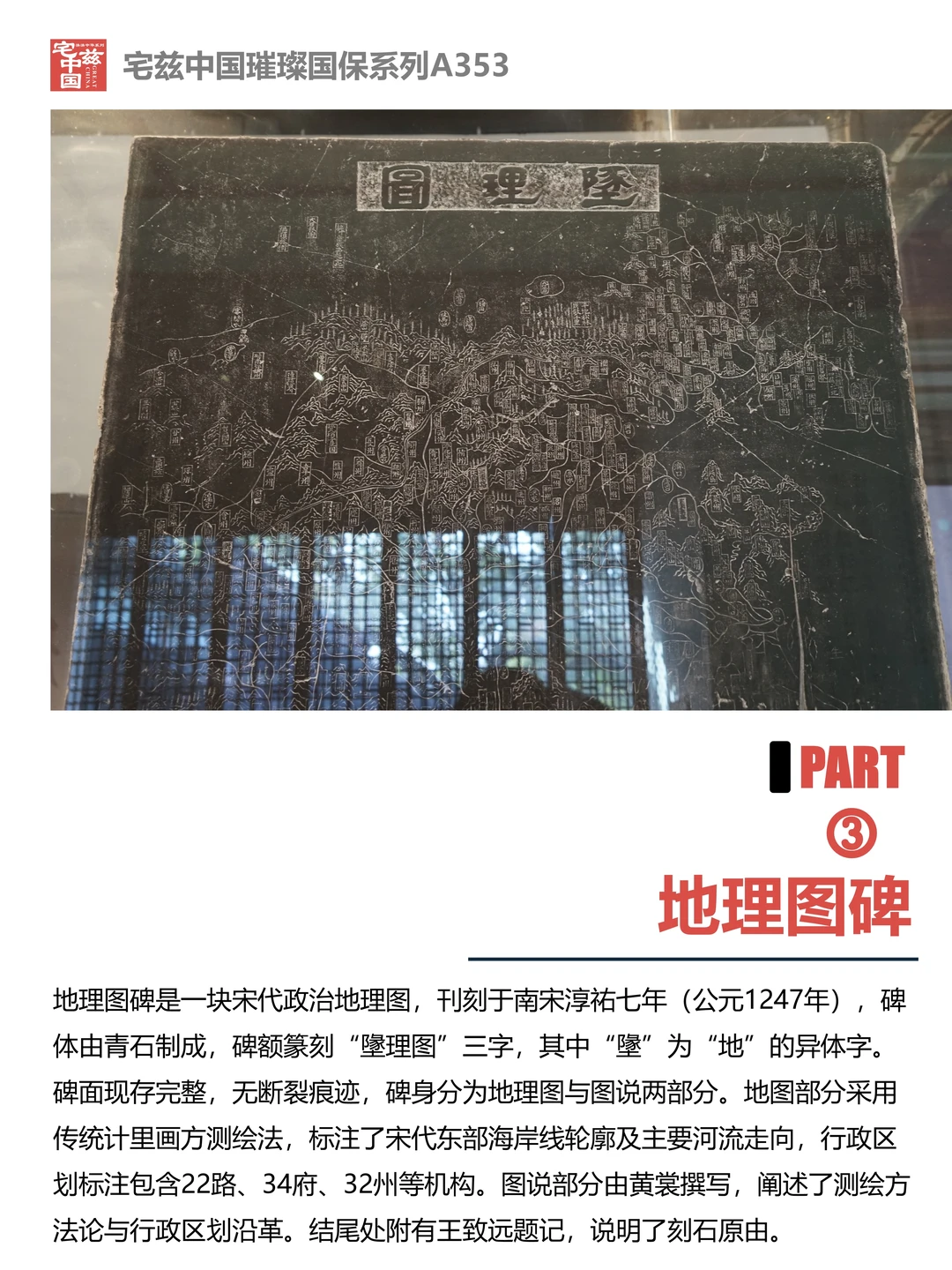 苏州文庙内宋代石刻主要包括平江府图碑、天文图碑、地理图碑和帝王绍运图碑,具有珍贵历史文化价值。平江府图碑是我国现存最早宋代城市地图,被称为“中国现存最早最佳的都市地图”,为研究中国古代城市由里坊制向街巷制演变提供了关键史料;天文图碑是中国现存较早较系统亦较准确的星图石刻,保存了我国十一世纪时恒星观测的部分资料;地理图碑是我国现存最早全国性石刻地图之一;帝王绍运图碑是现存记载最完整的帝王世系石刻文献。