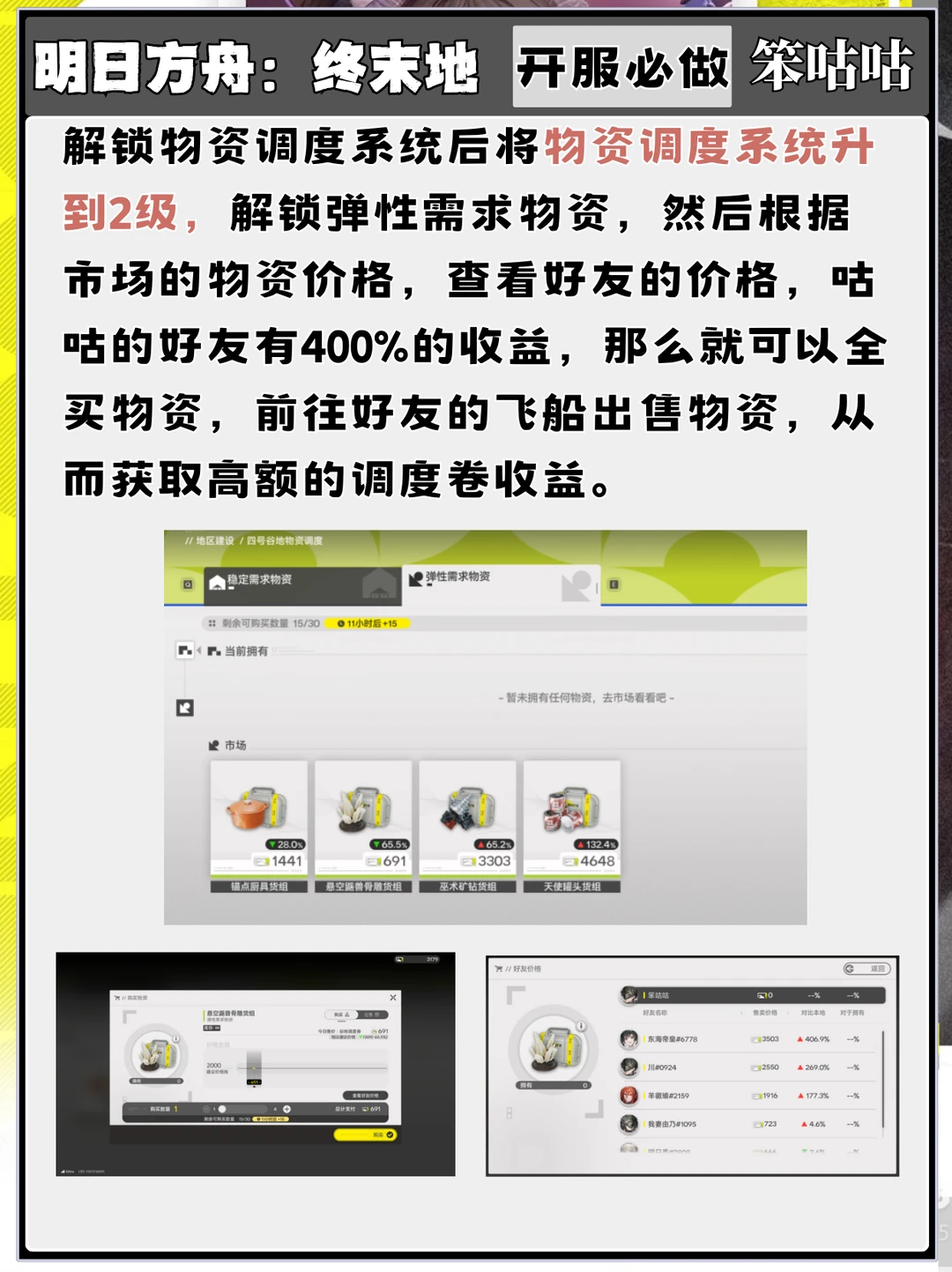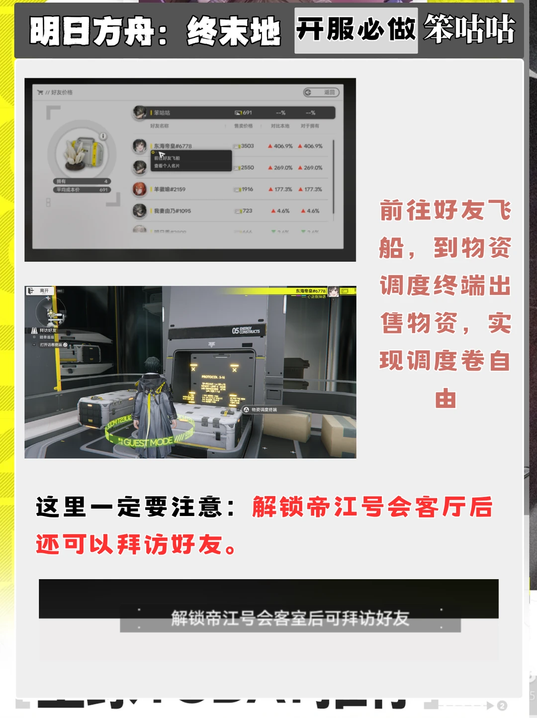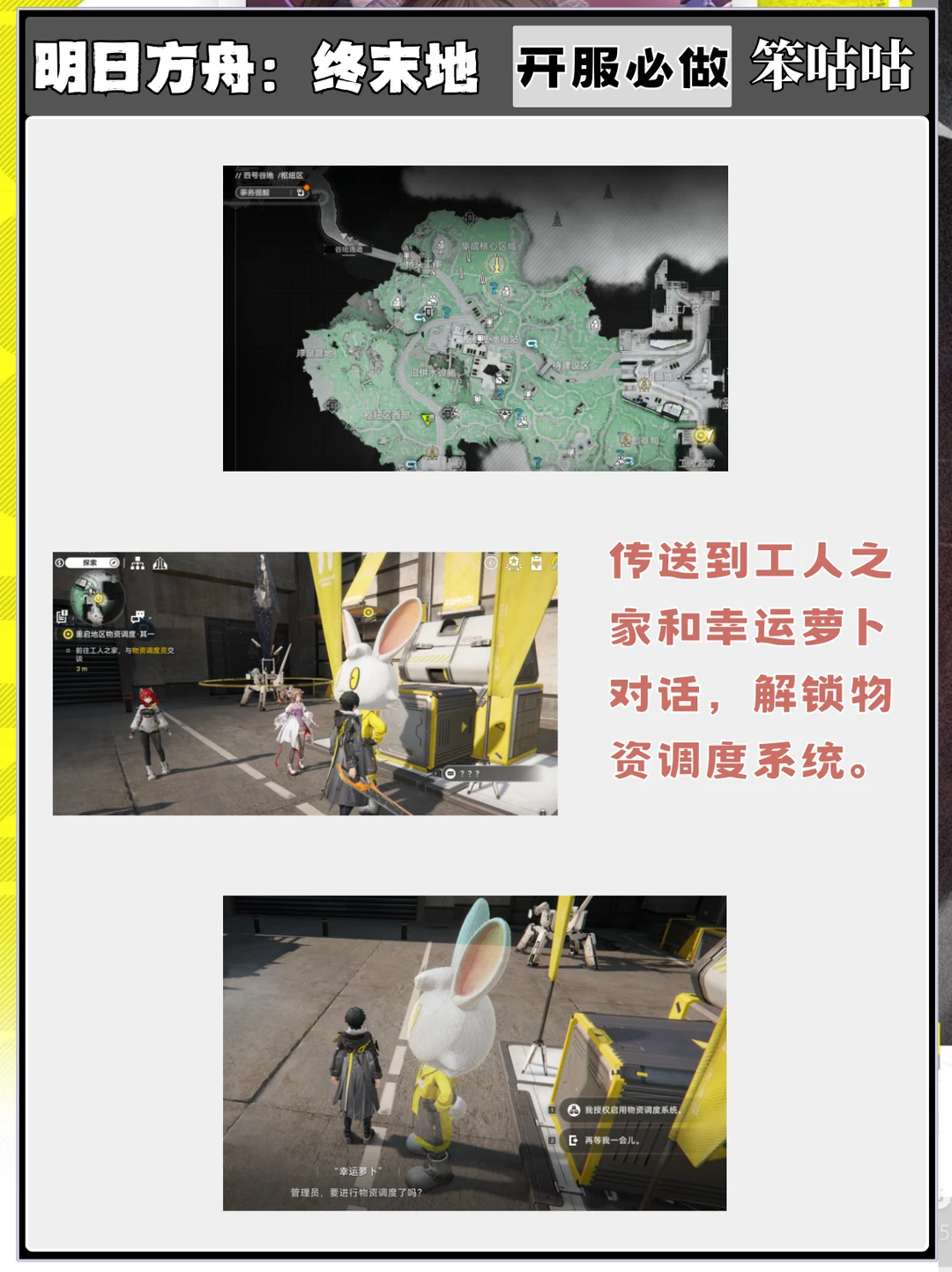 明日方舟终末地 终末地公测 明日方舟终末地攻略 塔卫二通讯 报!笨咕咕来也,明日方舟终末地今日开放公测啦,开荒了一整天了,这里给各位管理员一个开服必解锁系统任务的攻略,可以让管理员们开服首日轻松攒满调度卷! ------グッ!(๑•̀ㅂ•́)و✧------- 觉得有用的话一定要关关笨咕咕哦!好了,以上就是本期的全部内容。 ⭐制作不易,严禁任何商业性转载及搬运,转载需标注出处~ ⭐制作难免会有错漏,希望大家多多指出,我会及时修正喵~ ⭐祝大家都能十连双金!