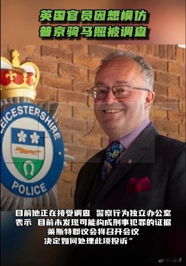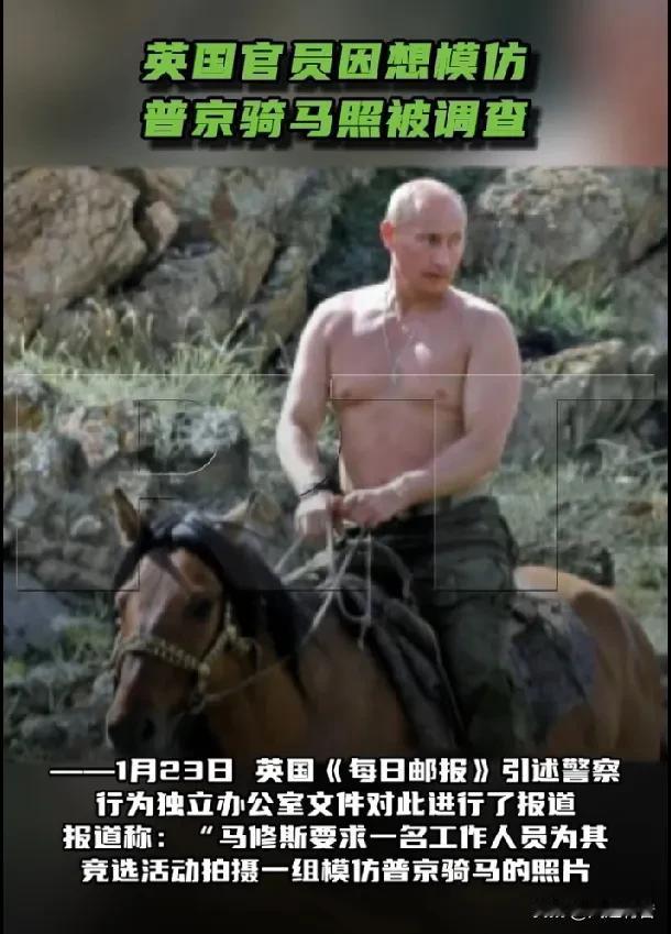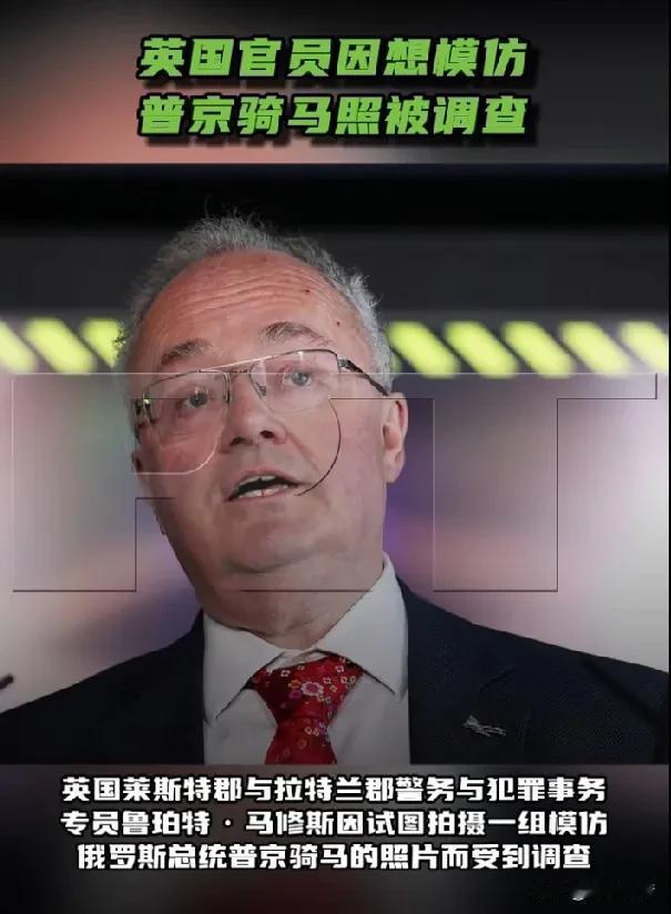 一英国官员因试图拍摄模仿普京骑马照片而接受调查。 据《今日俄罗斯》报道,1月23日,英国《每日邮报》引述警察行为独立办公室文件称,英国莱斯特郡与拉特兰郡警务与犯罪事务专员鲁珀特·马修斯因试图拍摄一组模仿俄罗斯总统普京骑马的照片而受到调查。 报道称:“马修斯要求一名工作人员为其竞选活动拍摄一组模仿普京骑马的照片,目前他正在接受调查。警察行为独立办公室表示,目前未发现可能构成刑事犯罪的证据。莱斯特郡议会将召开会议,决定如何处理此项投诉。” 警察行为独立办公室同时指出,针对马修斯的投诉内容涉及“蓄意鼓励或协助犯罪行为,以及担任公职期间行为不当”。 目前,英国和俄罗斯的关系已跌至低谷。据英国天空新闻1月22日报道,英国外交大臣伊薇特·库珀1月22日回应称:由于“对俄罗斯总统参与和平讨论的担忧”,英国将不会参加今天特朗普的和平委员会签署仪式。 在直播中,库珀指出:“这是一个巨大的机器人,我们今天不会成为签署国。这是一个涉及更广泛问题的法律协议。我们还对俄罗斯总统参与和平谈判表示担忧,因为我们目前没有看到他支持乌克兰和平的证据。”原来,英国不愿意加入“和平委员会”的原因是因为俄罗斯要加入。由此可见,两国关系真是水火不容了。