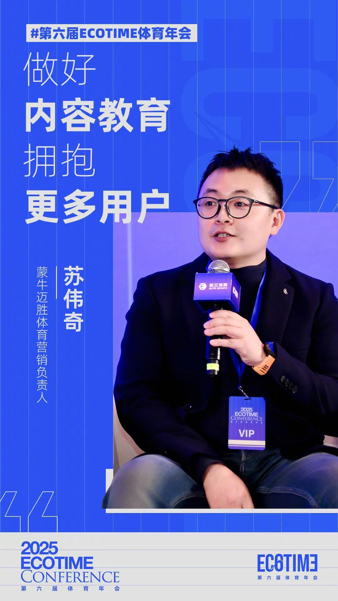 第六届ECOTIME体育年会 蒙牛迈胜体育营销负责人苏伟奇:做好内容教育,拥抱更多用户。