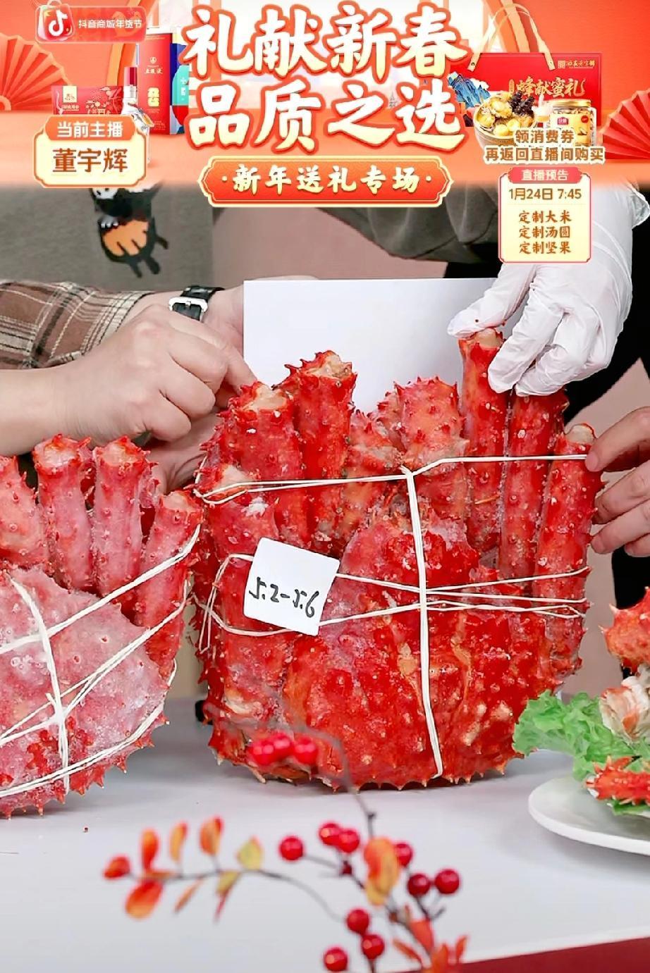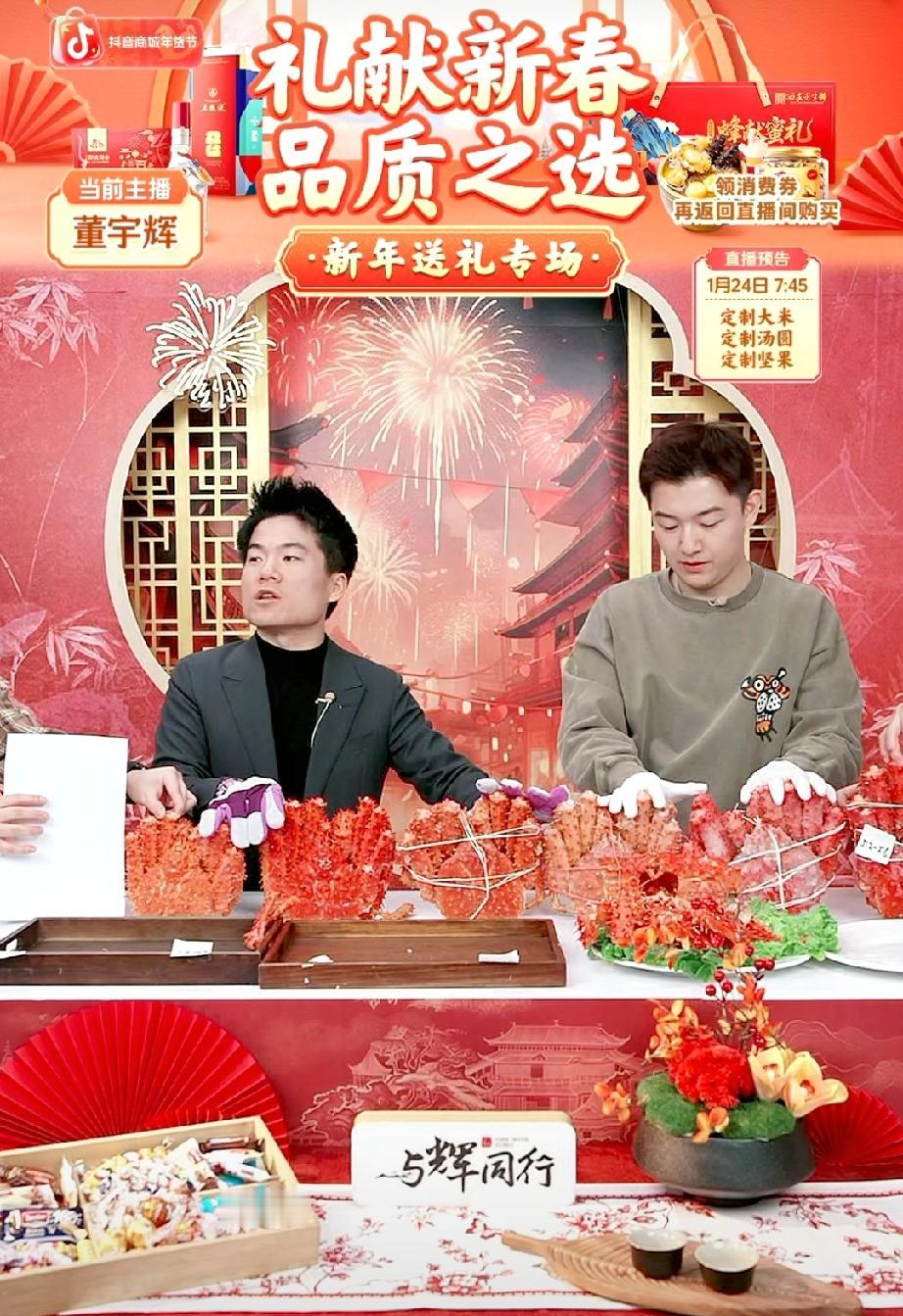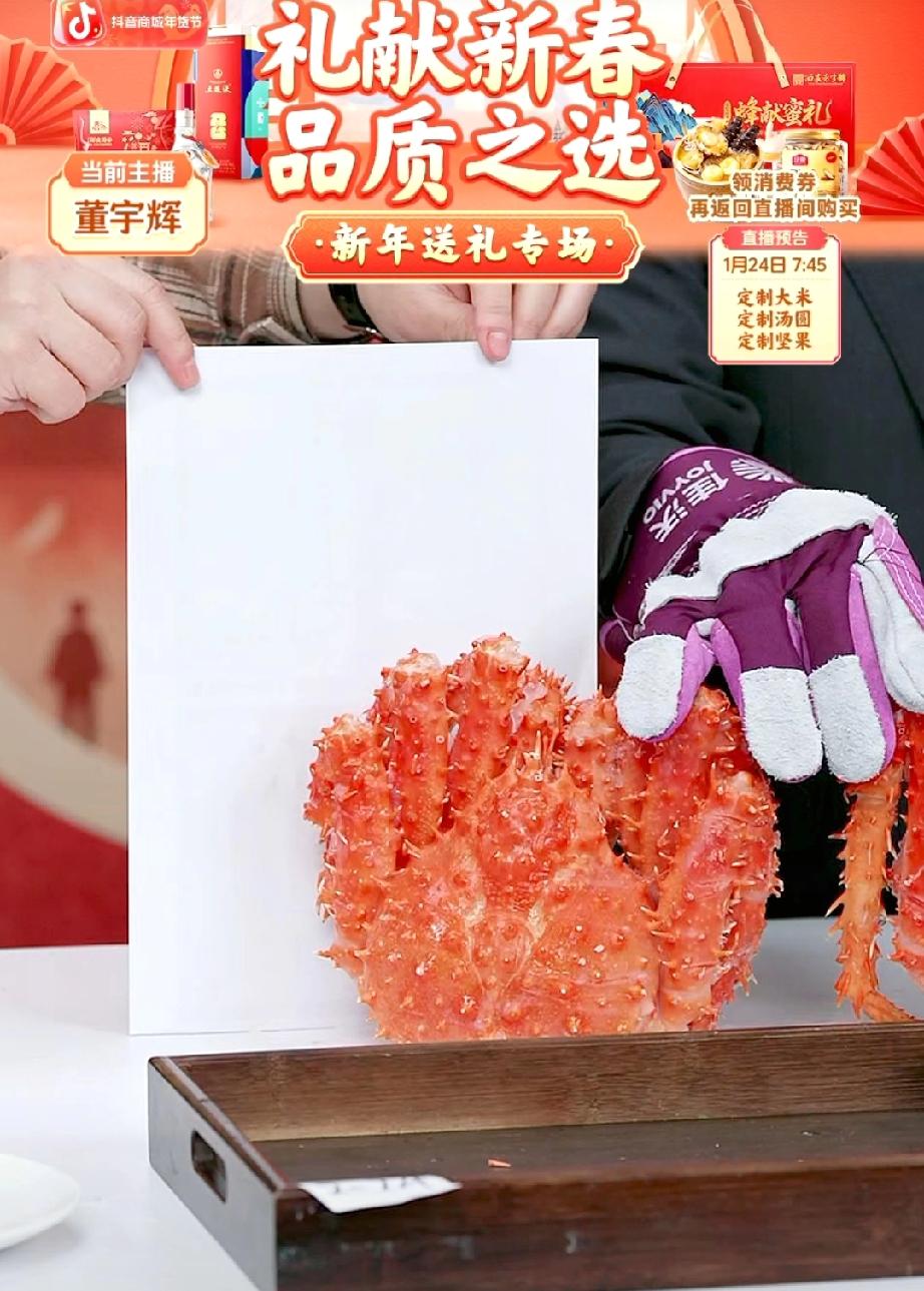 这哥俩卖大闸蟹真是忙坏了。为了给大家看的更直观,寻找参照物,A4纸用上了,连手指头用上了。 居然还有朋友要求放在盘子里面,觉得放盘子里面更直观。 其实还是董董这个办法想的好,用A4纸往后一立,一看最直观。因为大家都知道A4纸是多大,你用盘子的话,那盘子有大有小,哪里有A4纸看的标准呀? 宇辉夸还是董董聪明,别说董董这个办法还真是不错! 董宇辉 与辉同行