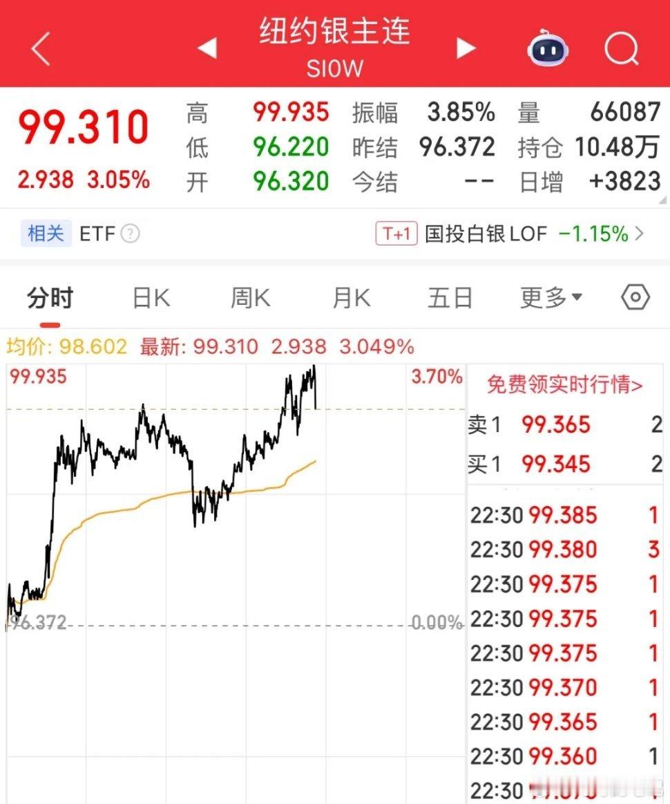 现货白银真正要进入“三位数时代”了,也许就在今晚,纽约期货白银最高只差0.065