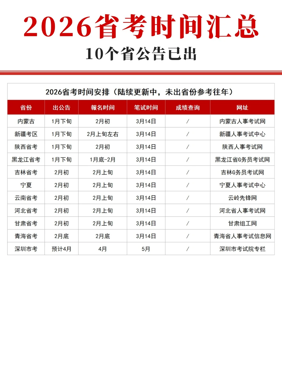 2026省考时间线,10个省已出!