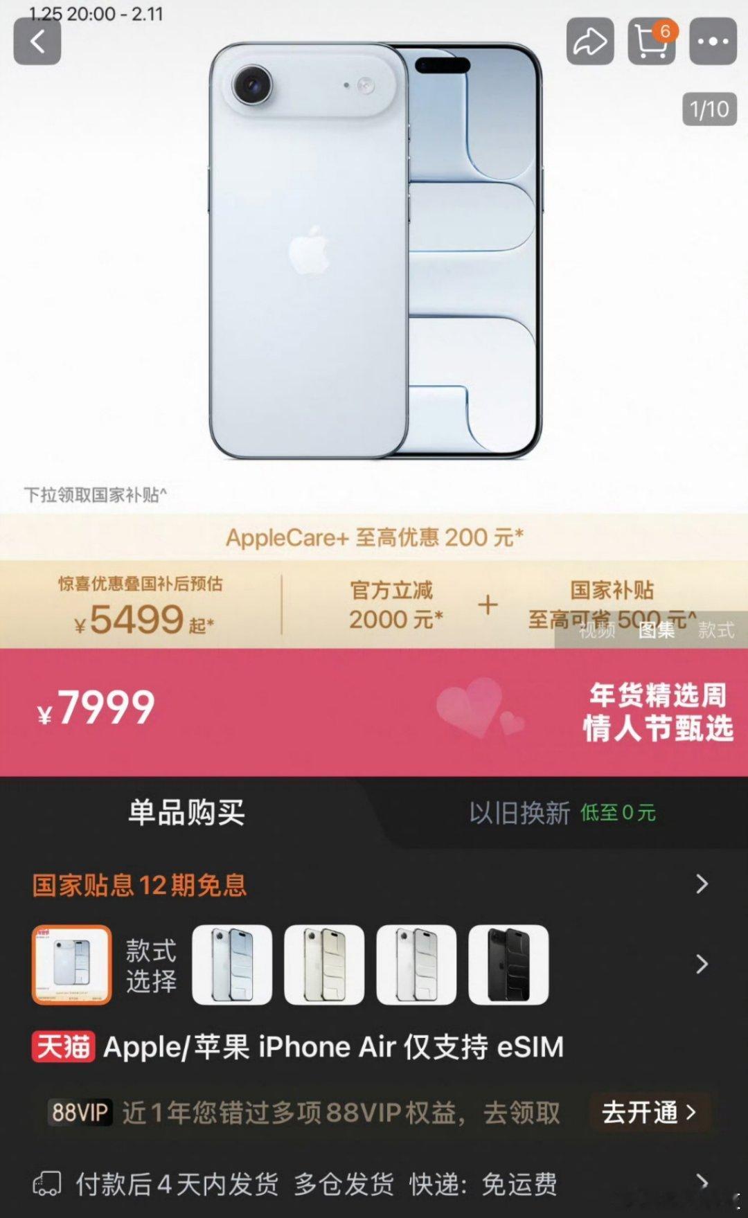 疯了疯了,iPhone Air既然搞大促销直降2000元!现在只需要5499元拿下!还好我没买,不然这个时候一定哭晕在厕所! 不过侧面也说明两个问题:一是iPhone Air在中国确实卖的不好!二是荣耀Magic8 Pro Air的发布,也影响到了iPhone Air在中国的市场操盘,不然果子也不会这么快且这么大幅度的降价!苹果用户的天塌了