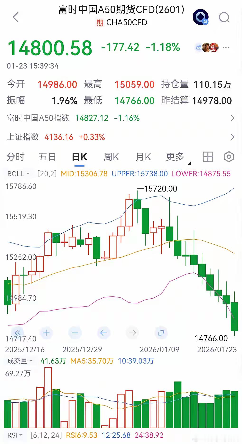 全市场唯二的两只九连阴的股票,一只是茅台,一只是上证50 ETF,茅台因为本身股价较高,又因消费市场低迷,受到市场抛弃也好理解,上证50 ETF的成分股业绩相对稳定,基本面也良好,但却被大资金连续九天无情打压,真不知道他到底错在哪里,不过在新加坡市场交易的富时A50期货也连续九天受到打压,这是一支在外资市场交易的产品,按理似乎不应受到国内资金的影响,但它也连跌九天,难道是外资也在参与逆周期调节?