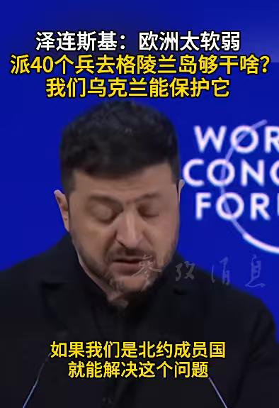 泽连斯基表示乌克兰能保护格陵兰岛,却也开出了条件,必须加入北约。他认为欧盟太软弱,派40个兵去格陵兰岛够干啥?他表示我们能保护格陵兰岛,可惜我们不是北约。言下之意就是说,但凡乌克兰是北约国家,都能派遣大军抵抗美国的霸权。欧洲现在已经束手无策了,不如绕过美国让乌克兰加入北约,让乌军就直面美军。过去,乌军跟俄军打得有来有回,说不定,乌军面对美军,同样也可以呢!
