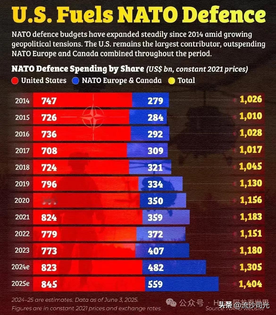 下图:各国,外国居民持有美国国债的数据,数据截至2025年11月;北约各国防务开