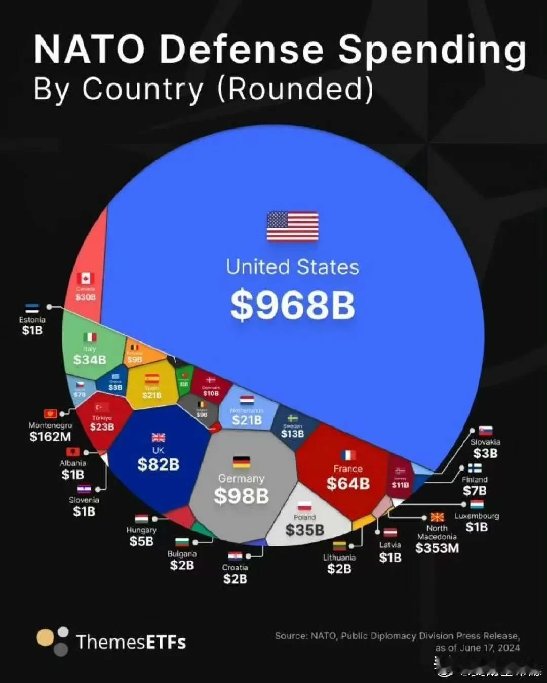 下图:各国,外国居民持有美国国债的数据,数据截至2025年11月;北约各国防务开支。美股国债
