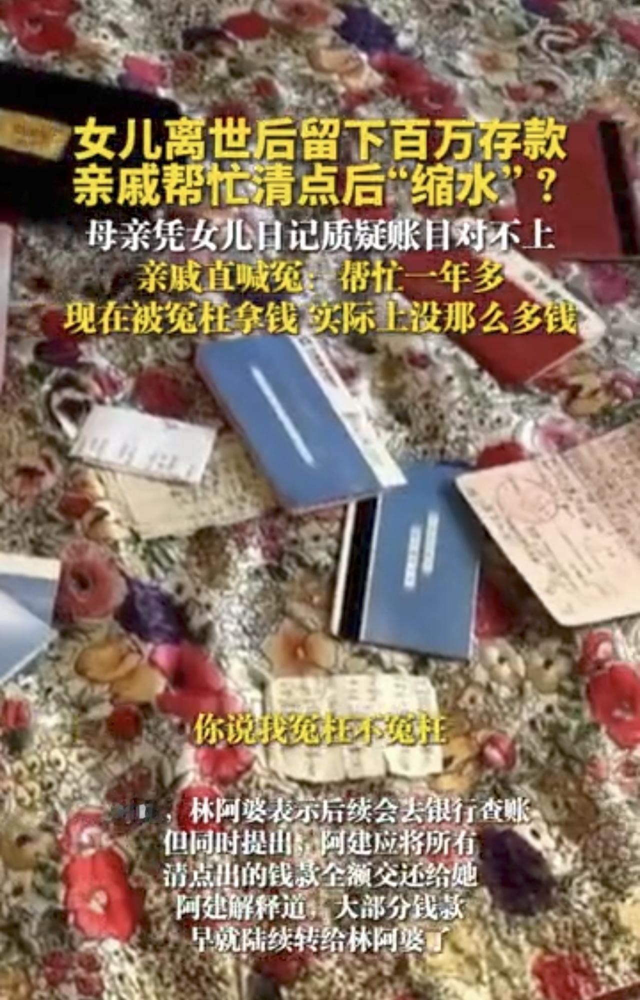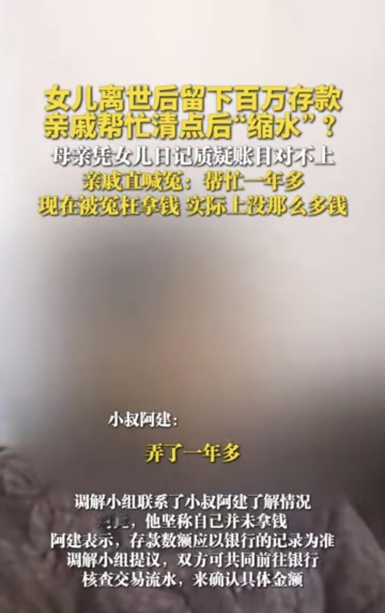 “人心隔肚皮!”一大妈女儿病逝,留下348万多存款,大妈让小叔帮忙清点,却发现遗产缩水了,大妈看到女儿日记里的账本,才知道账目对不上,她要求小叔把昧下的钱吐出来,小叔感觉冤死了:我帮了一年多的忙,好人没好报,还冤枉我拿钱,你亏心不?这下说不清了。 林阿姨白发人送黑发人,女儿重病,没抢救过来,撒手人寰,留下她悲痛欲绝。 痛失爱女的林阿姨,成了女儿遗产的继承人,但她没办法走出丧女之痛,继承事宜,就委托小叔阿建处理。 阿建办事效率很高,很快就把遗产进行了清理,报给了林阿姨,至于报给她多少,案例里没做交代。 看着女儿留下这么多财富,没来得及享受,人就英年早逝,林阿姨又悲从心来,老泪纵横。 这天,林阿姨收拾女儿的遗物,发现一个日记本,她翻开一看,发现女儿有记账的习惯。 林阿姨一核对,发现女儿在一家银行存款148万,在另一家银行存款200万,这加起来就有348万了,压根跟阿建跟自己报的数目核对不上。 林阿姨心里咯噔一下,看来自己信错人了,她那么信任阿建,他却辜负了自己,真是财帛动人心呀,他昧下了一部分女儿的遗产。 林阿姨找到阿建,让他把昧下的钱吐出来,阿建却非常气愤,一脸无辜,指责林阿姨血口喷人,他辛辛苦苦帮林阿姨处理女儿的遗产,不求她感恩戴德,但也别往自己身上泼脏水呀! 阿建说,不管林阿姨女儿账本怎么记的,实际上的遗产没有348万那么多,他一分钱没贪钱都转给林阿姨了,他也不是这种人,他帮林阿姨一年多,是出于亲情,啥都不图,问心无愧。 看来,两个人只能去银行进行核对了,到时候谁在说谎就一目了然了。 这事应了那句老话:钱财面前最考验人性。 林阿姨痛失爱女,这份打击本来就够沉重了,现在还得为了遗产跟自家人翻脸。小叔阿建帮了一年忙,到头来被指责“偷钱”,心里委屈也是必然的。 但这事儿闹到今天这个地步,不能只怪“人心隔肚皮”,得怪当初办事儿太不规矩。 首先,林阿姨这份“信任”给得太草率。几百万的遗产不是小数目,就算阿建是亲小叔,办事儿也得讲究透明。 林阿姨因为悲伤过度不愿经手,可以理解,但完全当“甩手掌柜”就是给日后埋雷。最稳妥的办法是,取钱、注销账户、清点资产时,双方必须都在场,或者请个律师做见证。 现在倒好,林阿姨凭女儿日记里的账本说话,阿建凭自己的嘴说话,这两边的数据对不上,那就是一笔糊涂账。 其次,日记账本和实际存款未必是一回事。女儿日记里写着348万,那是她记下的数字,可生病住院、日常开销、各种医疗费,哪一项不是流水一样花钱? 生病期间,存款缩水是很正常的。阿建要是没拿钱,那他确实冤;要是他真拿了钱,那这种吃绝户钱的行为就太缺德了。但法律不看谁嗓门大,也不看谁哭得凶,只看银行流水。 再者,帮一年忙确实辛苦,但辛苦不代表能“顺手牵羊”。阿建觉得帮了一年忙分文不取是情分,但情分归情分,账目归账目。 如果是为了报酬,当初就该说清楚;如果纯帮忙,更得把每一分钱的去向摆在台面上。现在说不清了,最直接的办法就是拿着林阿姨作为法定继承人的证明,去银行拉流水。哪天存的、哪天取的、取到了谁的卡里,银行系统里记得清清楚楚。 这起纠纷其实给所有人提了个醒:亲兄弟明算账,尤其是在面对遗产这种敏感财富时,规范化比人情更有用。 林阿姨现在怀疑也是人之常情,毕竟那是女儿的卖命钱。阿建如果真没拿,就配合去银行查清楚,那是自证清白唯一的路。如果真的是钱在治疗期间花掉了,拿出医院的票据对一对,误会也就解开了。要是谁真动了歪心思,法律迟早会让他吐出来。 说到底,利益是面照妖镜。在巨大的财富面前,靠自觉和信任往往是靠不住的。只有程序正义,才能既护住钱财,也守住亲情。 现在这种各执一词的局面,其实是双方共同的失职导致的。去银行对账吧,别让女儿的遗产最后全变成了律师费和官司费。 对此,你怎么看?