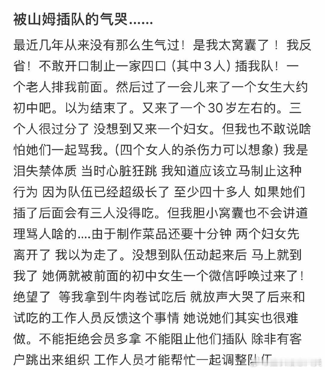 在山姆的柜台前,我被插队了,这让我忍不住哭了。