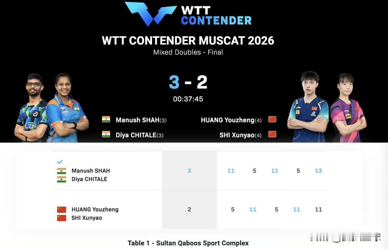 王励勤“惊醒”了:国乒连印度也敢输了! 国乒低迷,输日乒想到过。 国乒低迷,输韩乒也想到过。 国乒低迷,省队港澳台也想到过。 但是,国乒低迷到输给印度,那肯定没想到,绝对没想到。 WTT常规挑战赛马斯喀特站,混双决赛中 黄友政/石洵瑶2-3玛纳什·沙/奇塔莱:5-11,11-5,5-11,11-5,11-13。 不是我们“看不起”印度乒乓,而是事实上,印度乒乓和中国乒乓的距离,就像孟买和上海的发展距离。 说一个大家不愿承认,但却扎心的事实吧 不是印度乒乓水平提升很快,而是国乒下滑太快。
