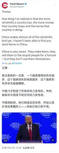 特朗普刚刚在达沃斯论坛上又胡说八道了。特朗普表示:“我注意到的一点是,一个国家拥有的风车越多,这个国家损失的钱就越多,这个国家的经济状况就越糟糕。中国几乎制造了所有的风力发电机。然而,我却在中国找不到任何风力发电场。中国很聪明。他们制造这些东西,然后以高价卖给愚蠢的人但他们自己却不用。” 特朗普在达沃斯论坛的这番言论,堪称反智且荒谬的典型,既暴露了其对全球能源格局的无知,也尽显其为政治私利歪曲事实的嘴脸。 按照他的错误逻辑,中国专门批量生产风力发电机,再以高价出售给其他国家,自身却从不使用这类设备,将其他国家视为可随意获利的对象。 但只要关注全球能源领域发展、具备基本常识的人都能发现,特朗普的这番言论缺乏任何事实支撑,每一个观点都暴露着他对全球能源格局的无知,本质上就是违背事实的谎言。 暂不讨论风车与经济发展之间的关联,单就全球能源转型的大趋势而言,风力发电作为清洁、可再生、高效的能源形式,已成为世界各国重点布局的核心产业,更是各国实现碳中和目标、降低化石能源依赖的关键路径,并非特朗普口中毫无价值、得不偿失的产业。 全球范围内,诸多国家通过发展风电产业,实现了经济发展与生态环保的协同推进,这一事实已被大量实践案例充分证明。 作为全球风电产业的先行者,丹麦的发展实践就直接反驳了特朗普的错误观点。这个国土面积仅4.3万平方公里、人口553万的国家,在切尔诺贝利核电站事故后,果断停止核电站建设,将风力发电作为核心替代能源全力推广。 经过数十年的持续发展,风力发电已成为丹麦的标志性出口产业,2008年该国风电相关装置及服务的出口总额已达56亿欧元,旗下的维斯塔斯风力系统公司曾长期占据全球风电设备市场的领先地位。 如今,风电在丹麦全国电力供应中的占比早已超过50%,部分年份甚至能达到70%以上,不仅实现了能源自给自足,还能将多余风电出口至周边国家,带动国内制造业、服务业的有序发展,创造了大量稳定就业岗位,增强了经济发展的韧性与活力。 这样一个依靠风电产业实现高质量发展的国家,在特朗普的错误言论中却成为经济受损的反面案例,足以看出他对风电产业的认知存在严重局限。 除丹麦之外,作为全球工业强国的德国,近年来也在持续推进风电等新能源产业布局。 尽管在风电基础设施建设和技术研发的前期阶段投入了大量资金,但从长远发展来看,这种前瞻性投入有效降低了德国对化石能源的依赖,减少了环境污染,同时让德国在全球风电市场中占据重要地位,为经济发展注入了新的动力。 特朗普“风车越多经济越差”的论调,本质上是对全球能源转型客观规律的无视,核心目的是迎合自身政治私利,完全忽视了各国发展风电产业的实际成效。 特朗普关于“中国造风机却不用”的说法,同样缺乏事实依据,诸多权威数据和现实案例均可彻底揭穿这一谎言。 根据最新行业统计数据,中国目前已成为全球最大的风电装备制造基地,风电产业产值占全球的64%,远超欧盟和美国,形成了涵盖研发、生产、安装、运维的完整产业链,技术水平与规模化程度均处于全球领先地位。 具体来看,中国风电叶片产能占全球64%,发电机产能占全球73%,齿轮箱产能更是达到80%,全球新增装机前5名的风机供应商中,有4家来自中国。 中国每年都会向全球多个国家和地区出口大量风电设备,从欧洲的英国、德国,到南美洲的巴西,再到东南亚的印度、越南,中国造风力发电机凭借可靠的技术、合理的价格和完善的售后服务,获得了全球市场的广泛认可。 中国风电设备能够占据全球市场主导地位,核心原因并非所谓的“算计”,而是多年来在技术研发上的持续投入、产业链的不断完善,以及对全球能源转型需求的精准把握,是全球市场自由选择的结果,与他所说的“恶意抬价、收割他国”毫无关联。 更为关键的是,中国不仅是风力发电机的生产大国,更是风电使用大国,目前已建成全球规模最大、覆盖范围最广的风力发电体系,彻底打破了特朗普“中国找不到任何风力发电场”的谎言。 截至2025年11月底,中国风电装机容量已达6亿千瓦,占据全球风电总装机容量的一半以上,连续15年位居世界第一,这样的规模是无法被忽视的客观事实。 中国的风电场遍布各地,从东北的内蒙古草原到西北的戈壁荒漠,从东南的蔚蓝海岸到西南的高山峡谷,一座座风车迎风转动,成为中国清洁能源发展的真实写照。
