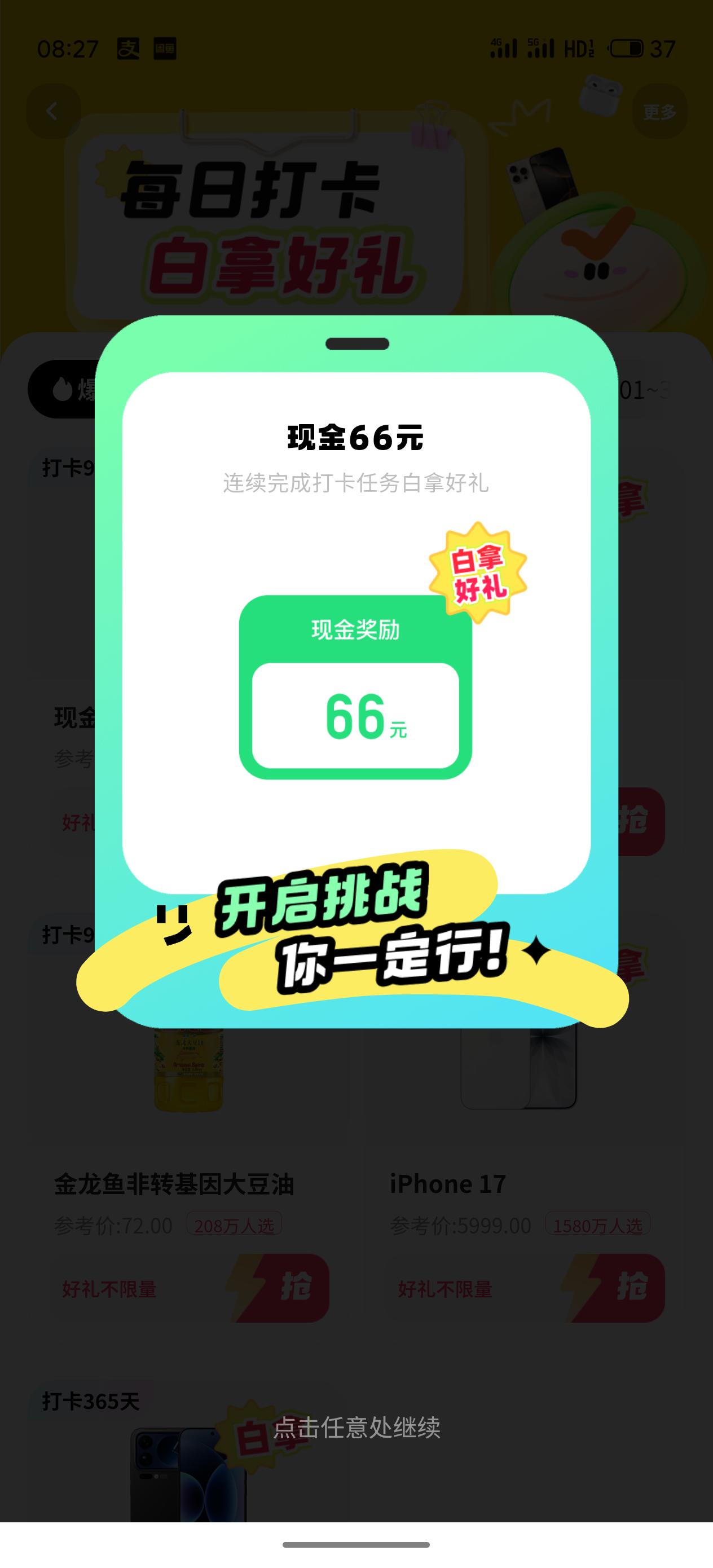 08:01开始 08:07完成 获得积分58-22=36 兑换一个🧧0.16