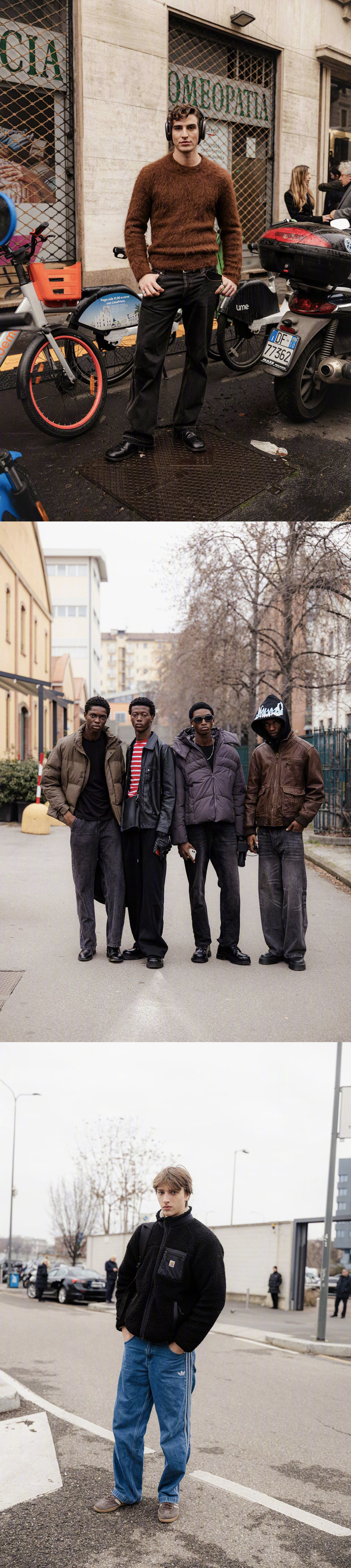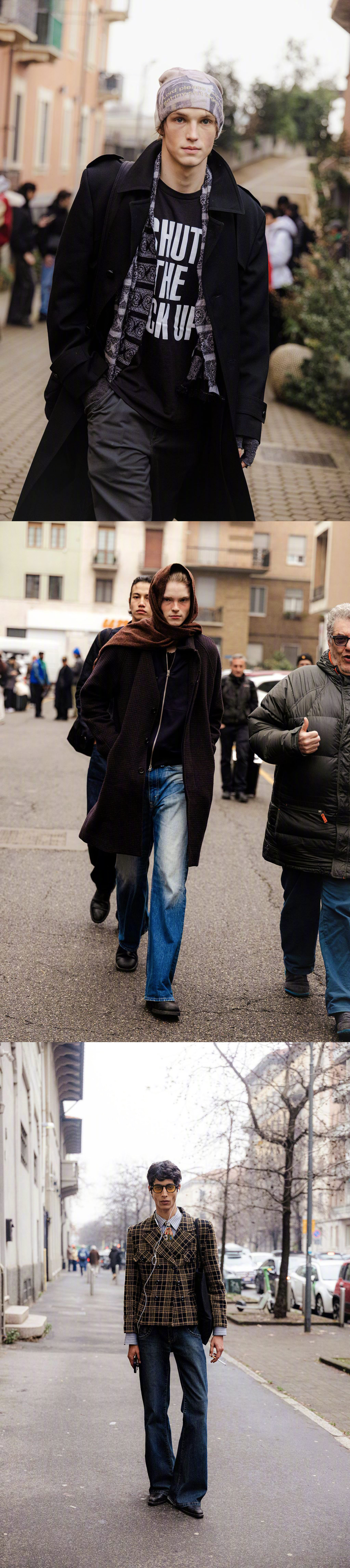米兰男装周 Street Style 模特街拍合集,男装周期间模特们的穿搭OTTD,都是主打简单随性的风格。📷 男装周