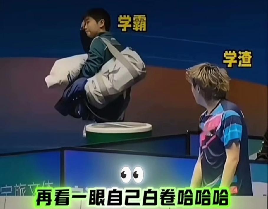 学渣对学霸的知识渴望,真是到顶了。 莎莎打完比赛背着包准备下场,旁边观众热火朝天的叫莎莎,莎莎一边走一边摆手。身后是没结束的男队队员王晨策,球也不打了,看着莎莎离开,真是无比羡慕。就好像同一时间考试,莎莎已经夸夸交卷了,王晨策才只写了个学号,还是白卷!