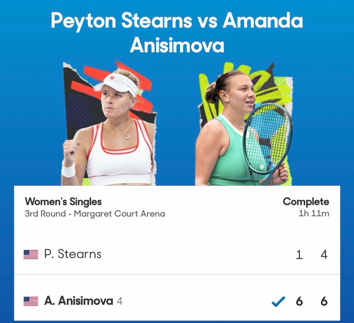 美国三姐妹轻松晋级澳网女单16强凯斯63 63卡普里斯科娃佩古拉63 62谢列赫梅捷娃阿尼西莫娃61 64斯特恩斯这也太稳了……这很澳网网球talking大会澳网2026